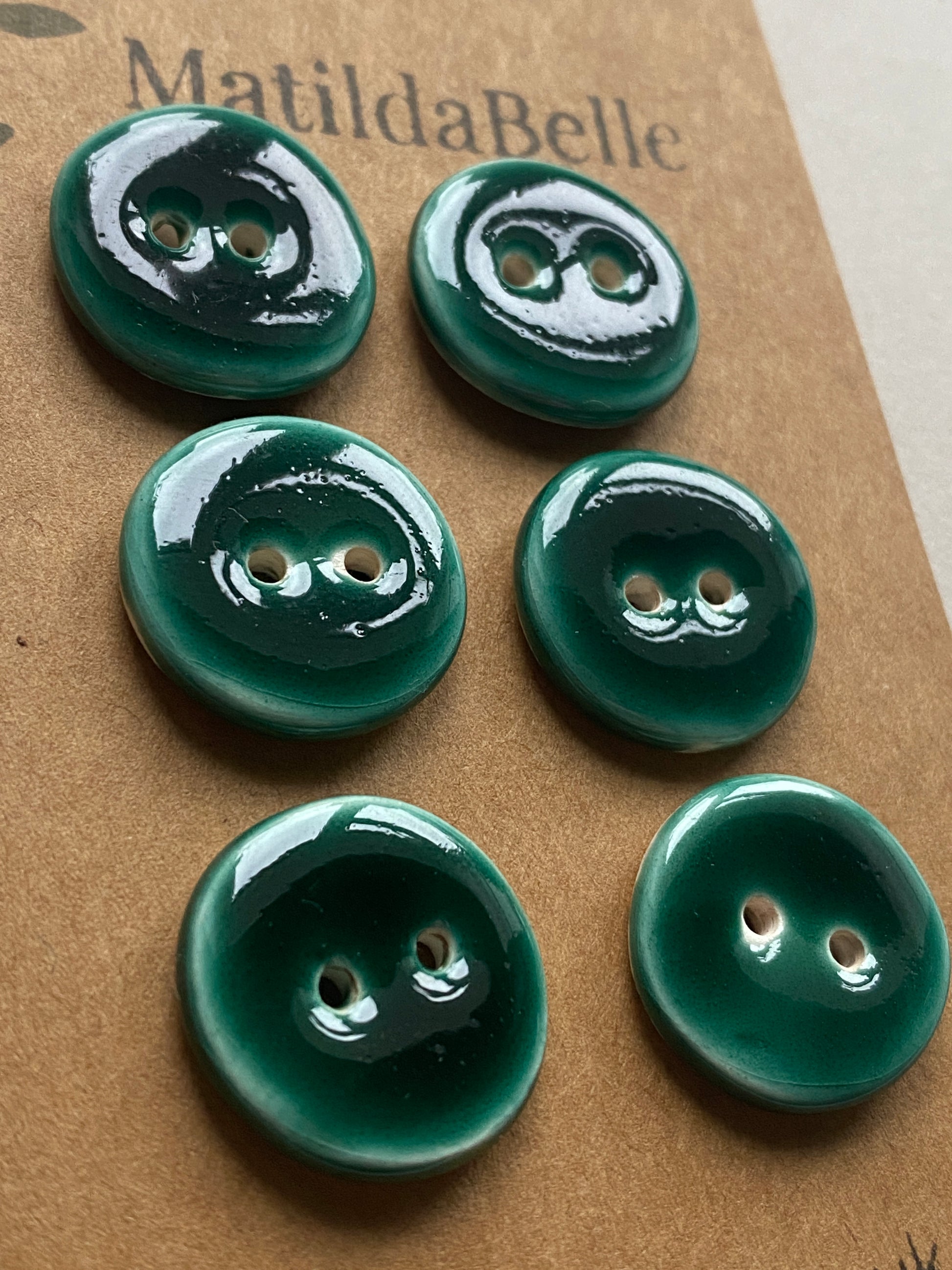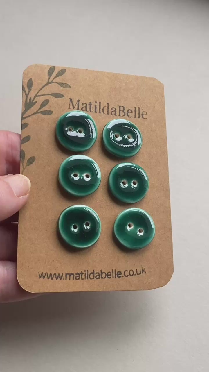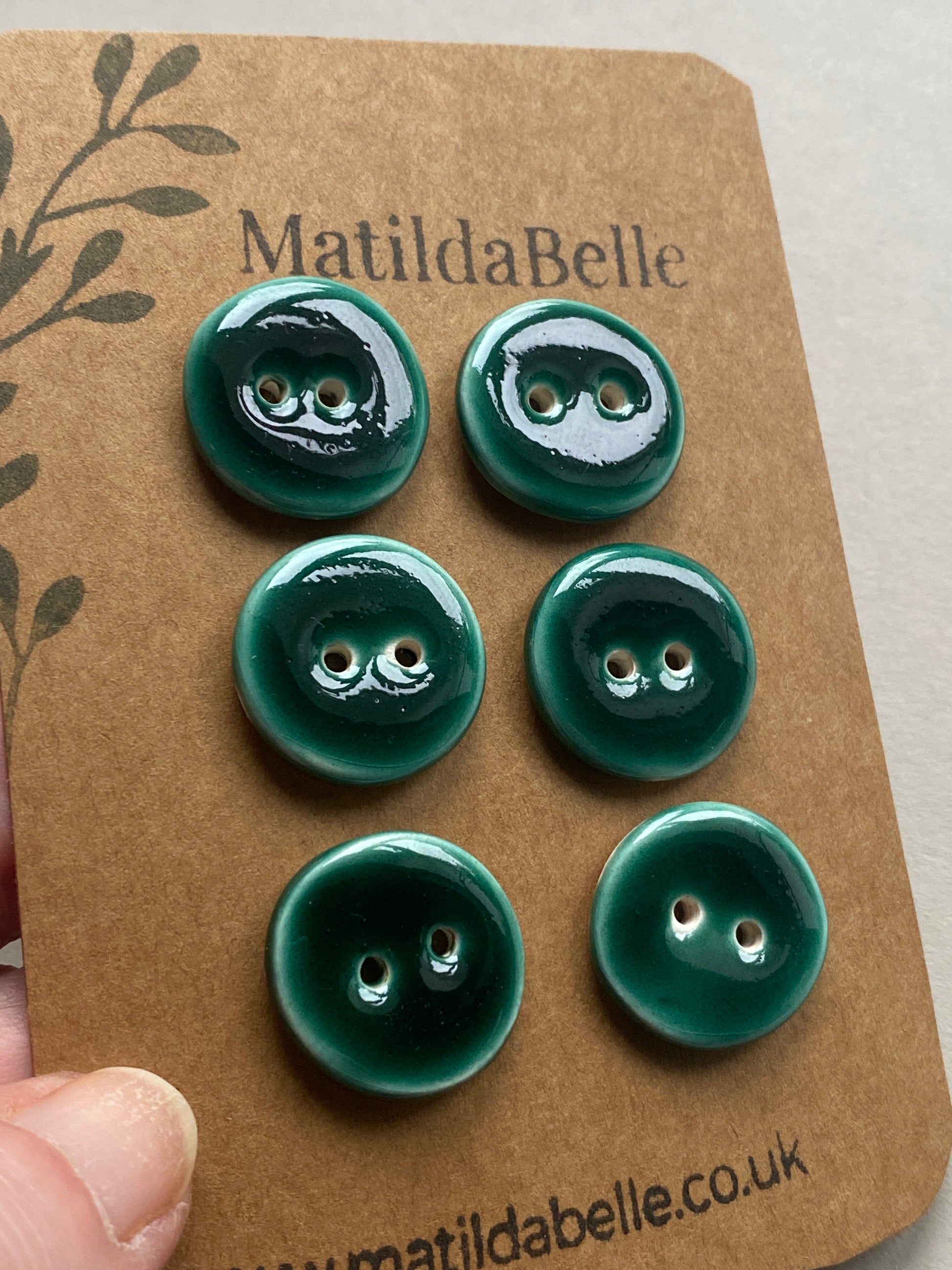 This gorgeous mixed colour set of Six handmade ceramic round buttons have been glazed in a fabulous rich glossy Green