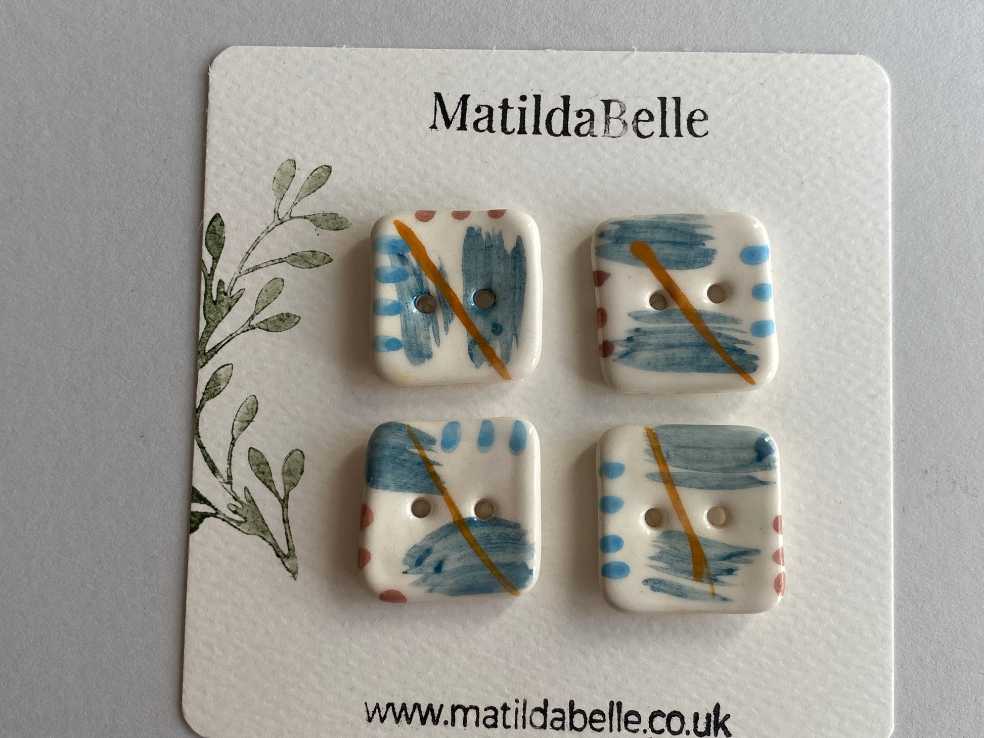 25mm set of Six square handmade Buttons Coastal Colours