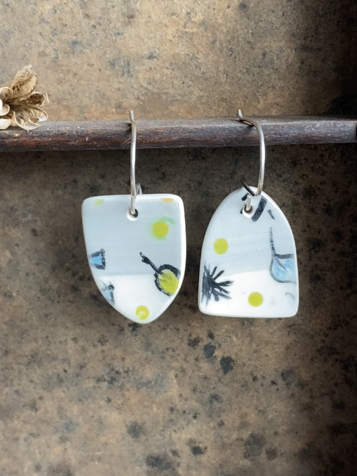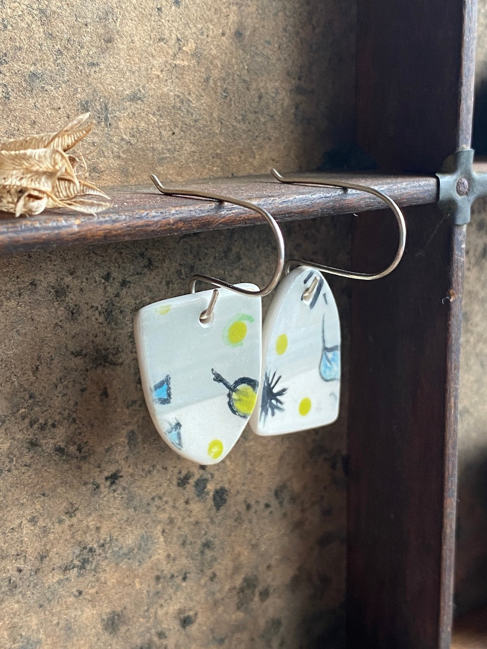 Botanical Pottery Drop Handmade Earrings on Silver - Exquisite Nature-inspired Jewellery