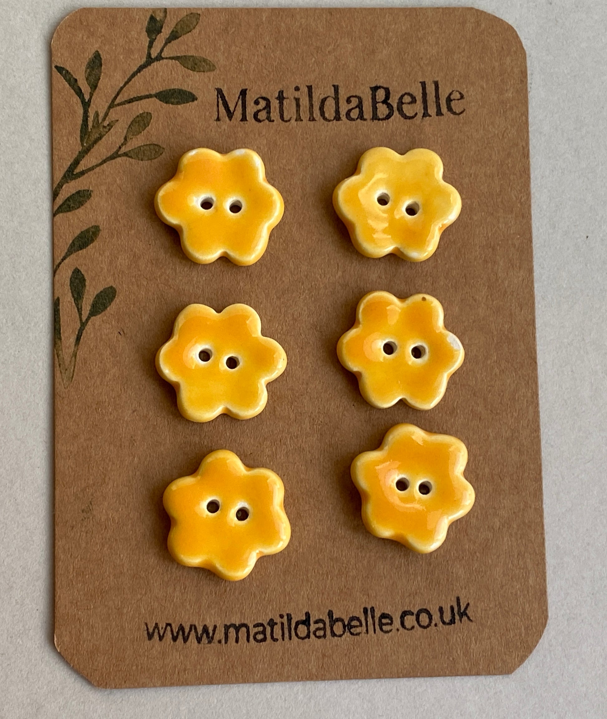 20mm Buttons set of 6 handmade Yellow Flower 20mm Ceramic Buttons