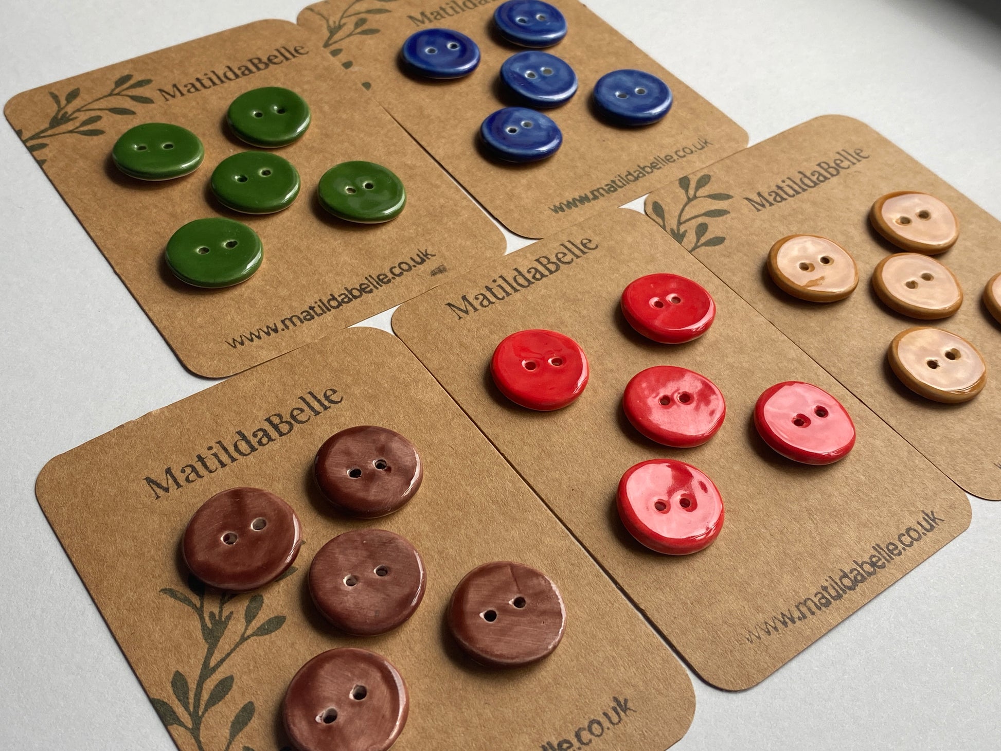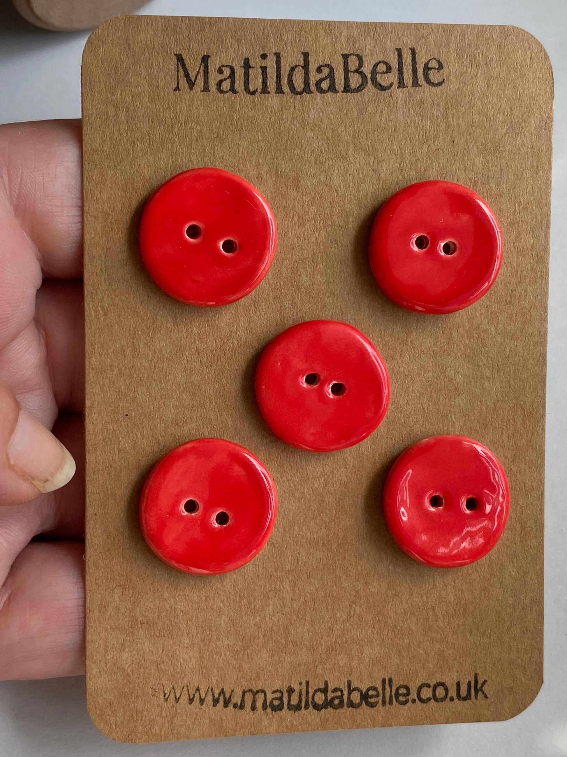 Buttons set of 5 Round 20mm Handmade Ceramic Buttons choice of colours