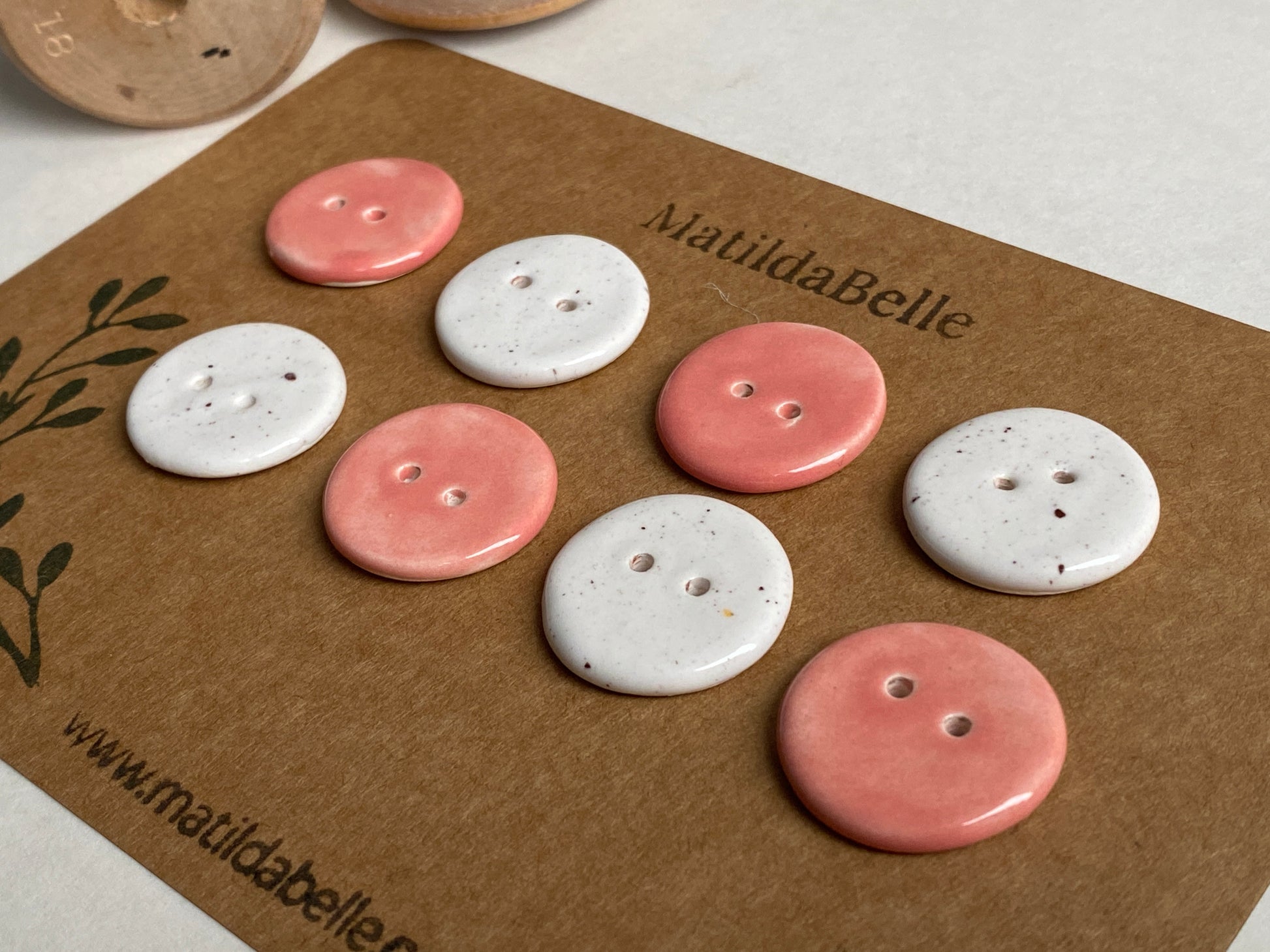 These classic ceramic buttons are perfect for adding a touch of handmade quality and character to garments, accessories, and more.