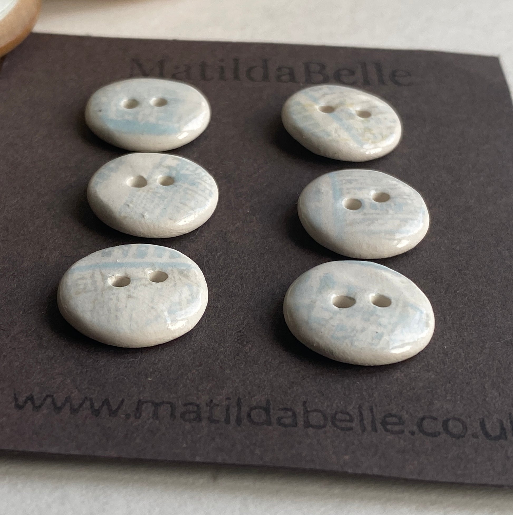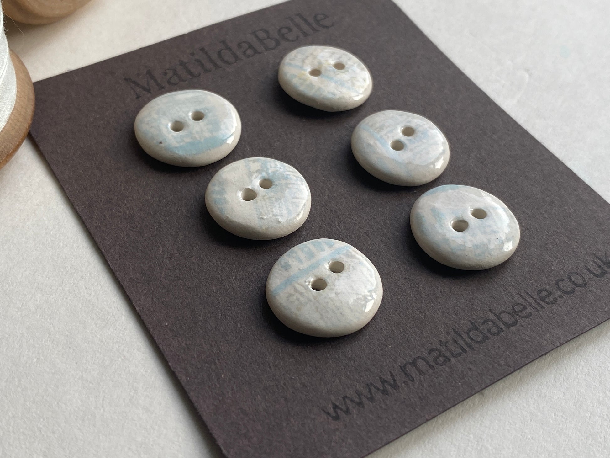 Buttons set of Six 16mm Handmade Round Ceramic Buttons