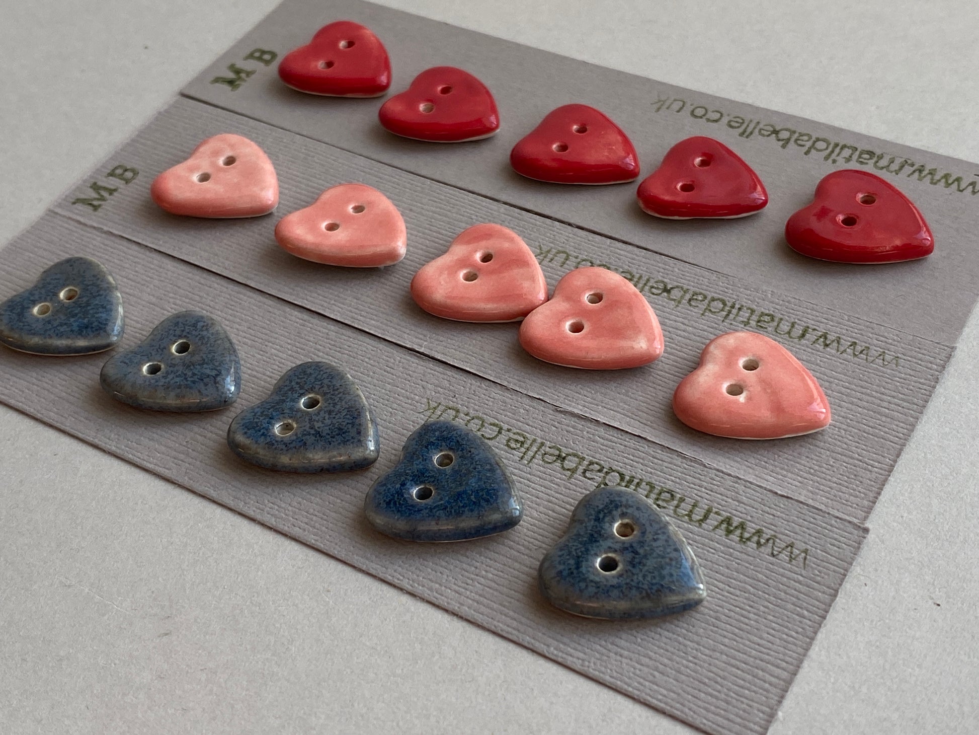 Buttons set of five Hearts 18mm handmade ceramic buttons
