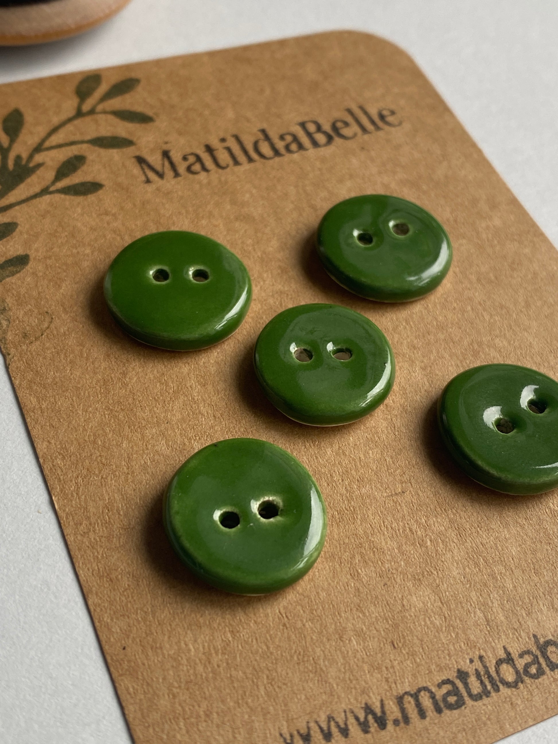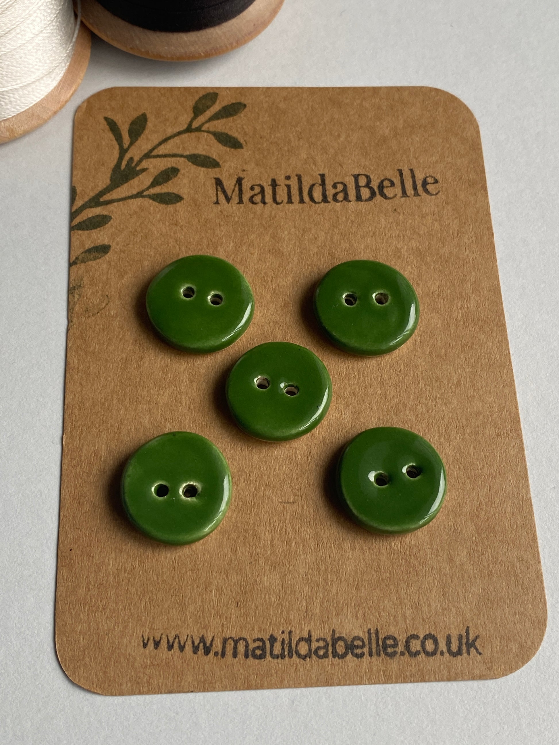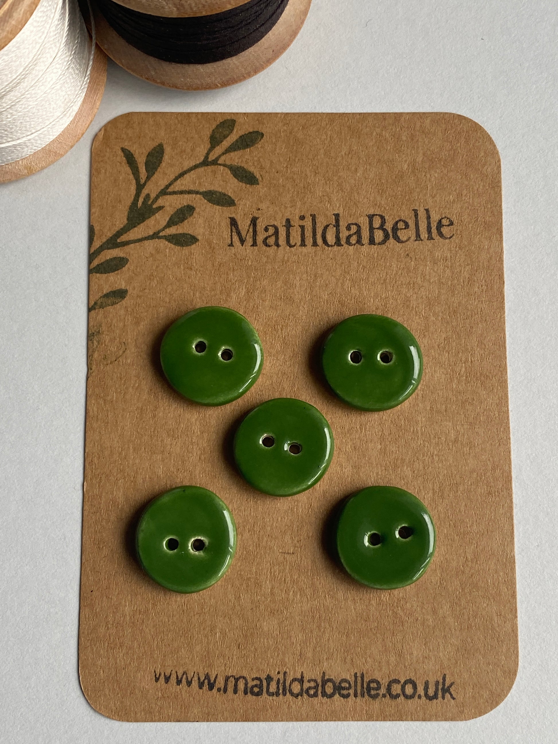 Buttons set of Five Forest Green 18mm round Handmade Ceramic Buttons