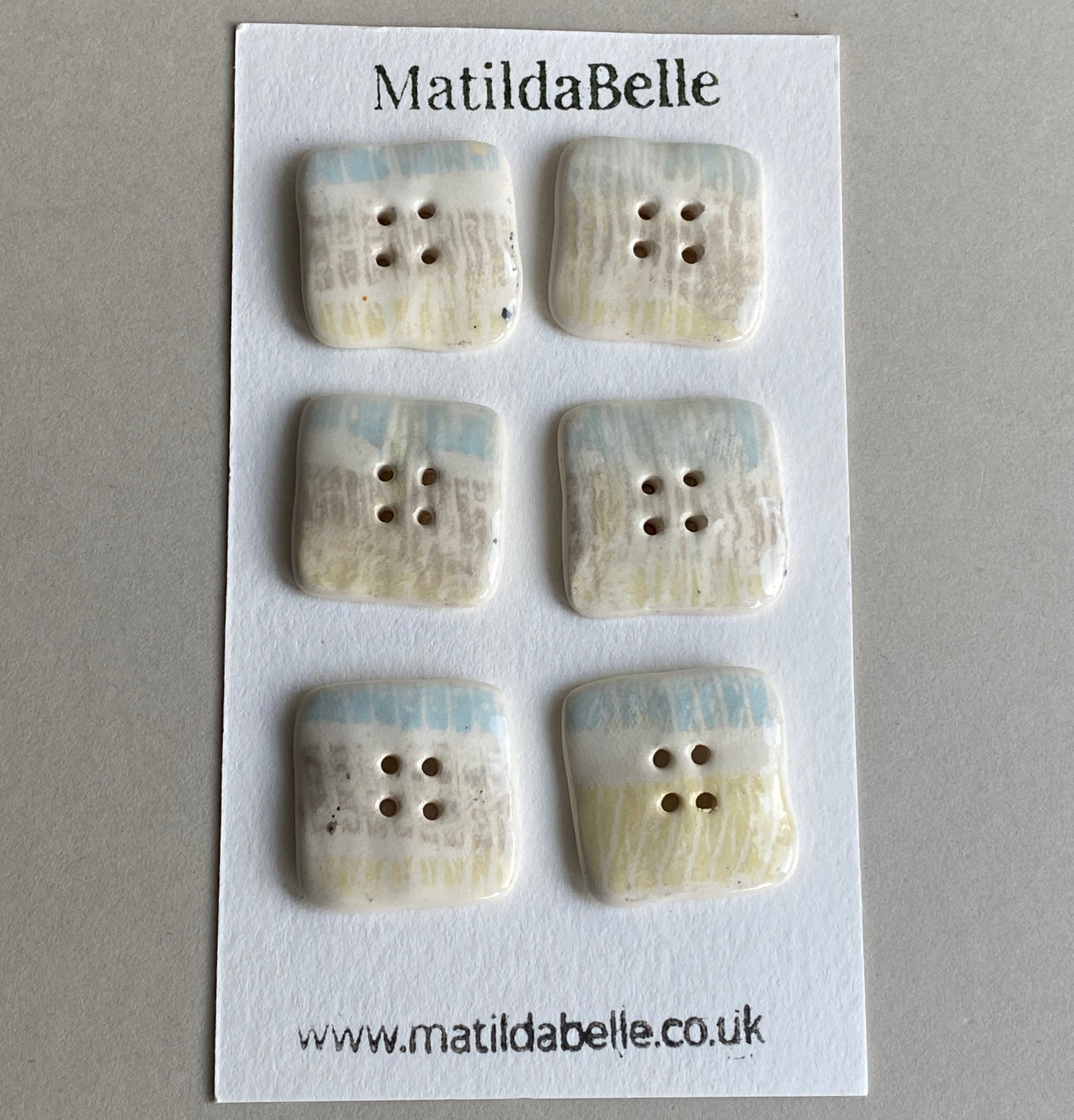 Buttons set of Six Square 25mm handmade Ceramic Buttons