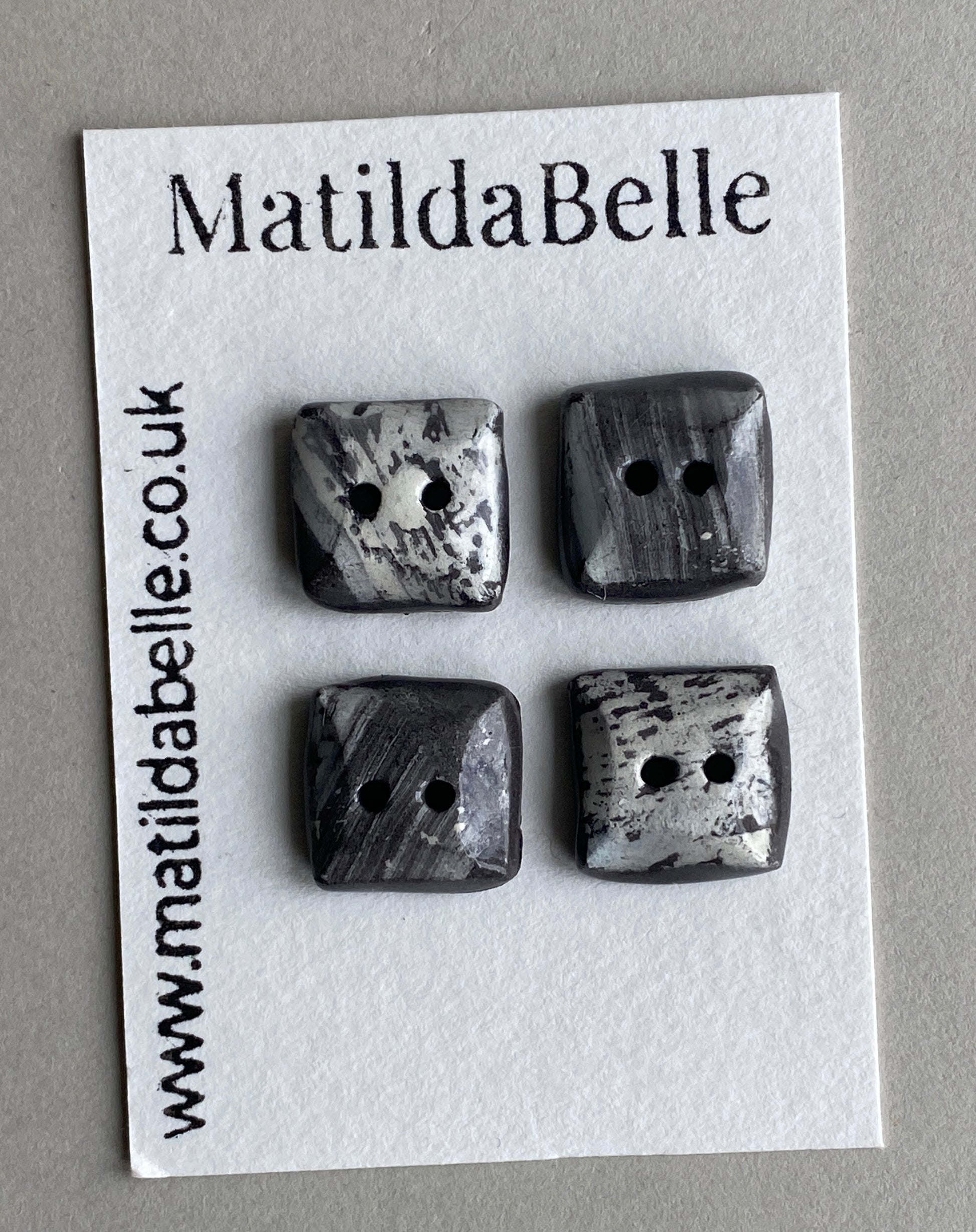 Ceramic Buttons handmade tiny Square set of Four 14mm