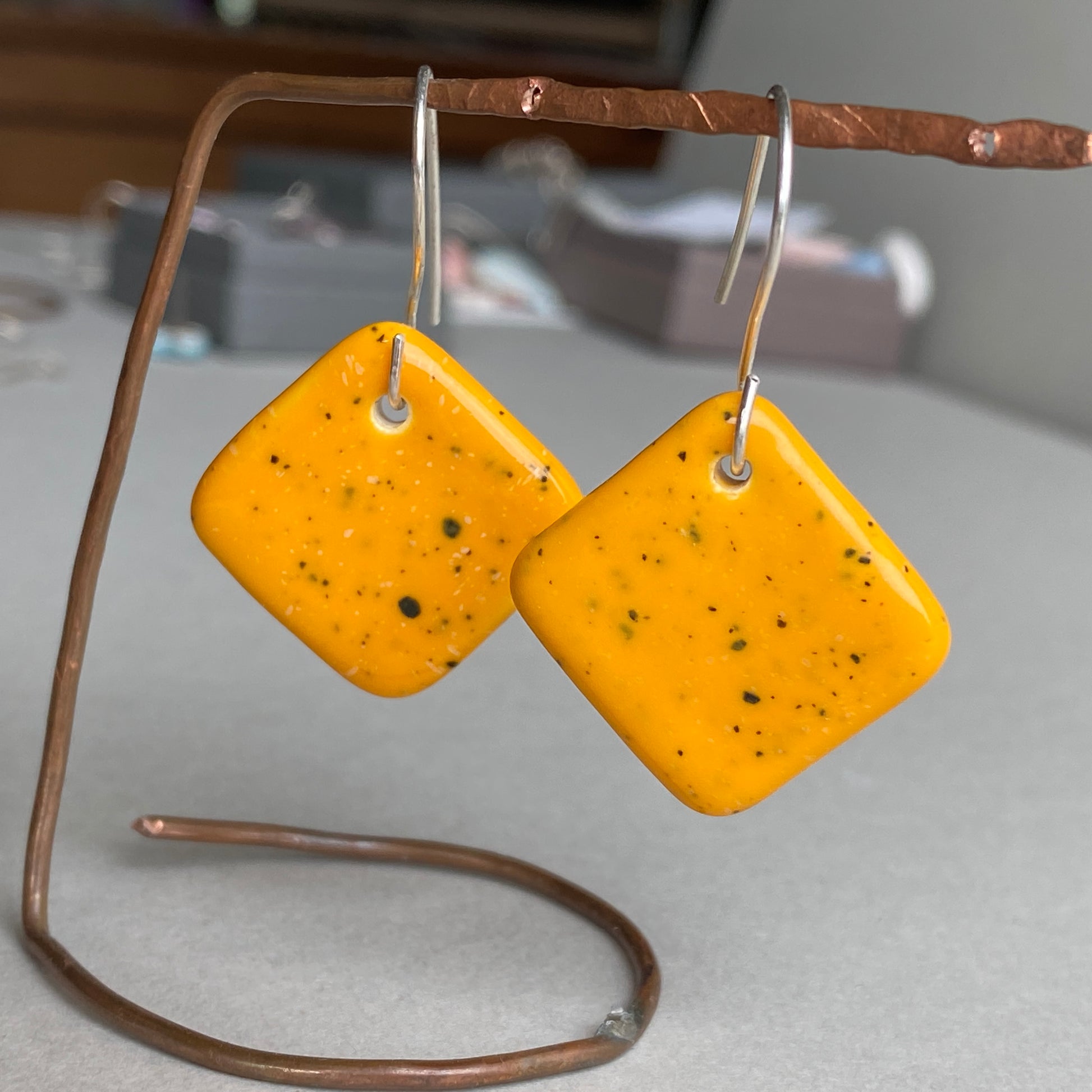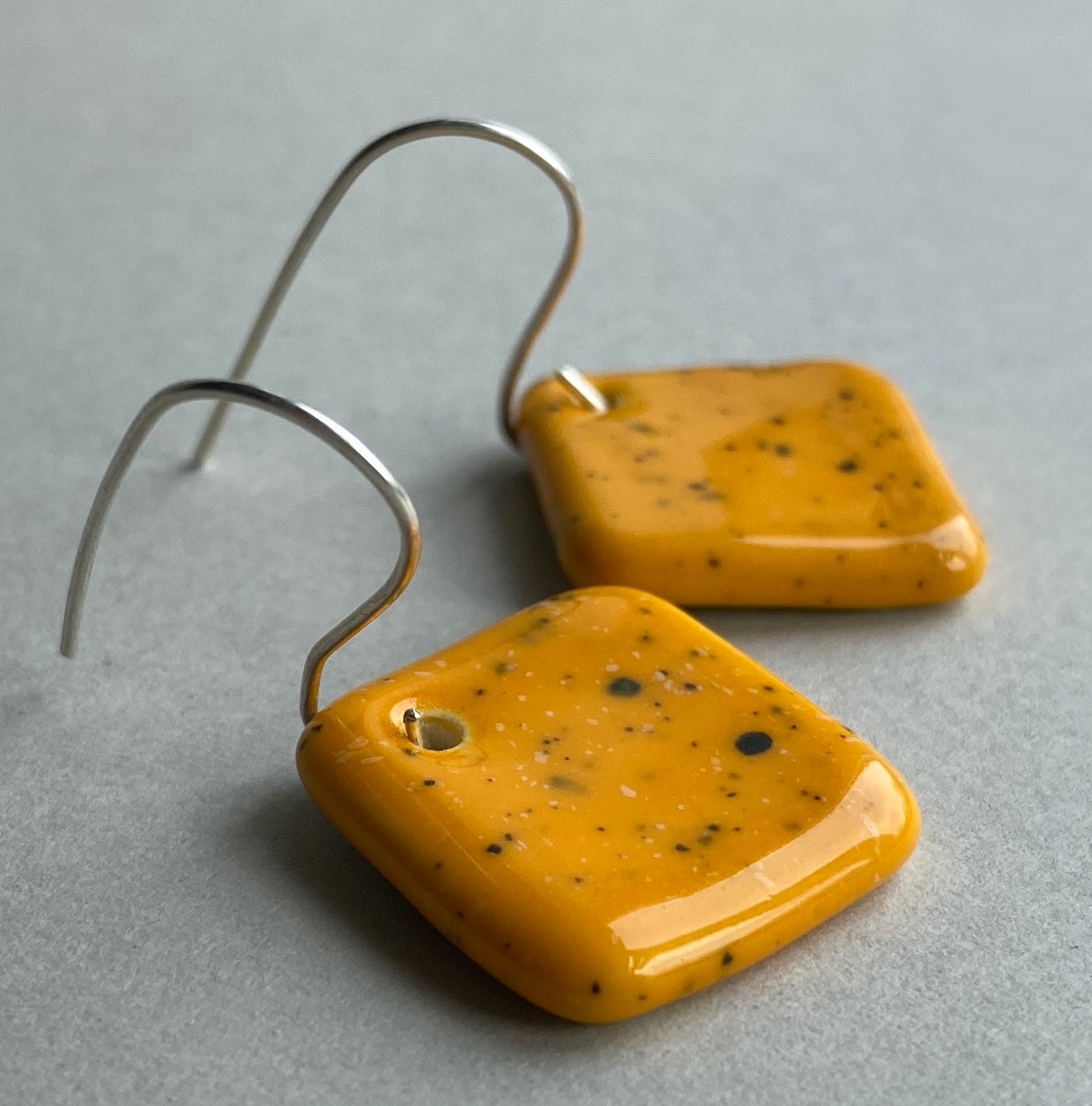 These earrings are a fabulous rich speckled yolky yellow perfect for brightening up a simple outfit.
