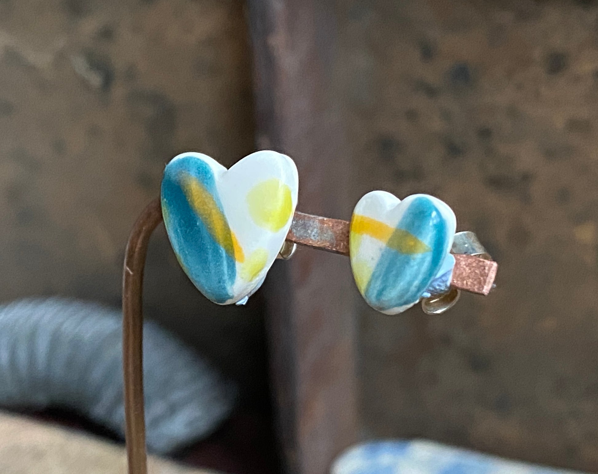 Ceramic Heart Mismatched Heart Stud Earrings.