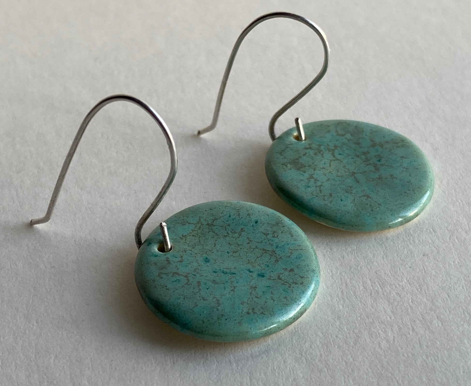 Ceramic rounds Dangle Earrings - Green gold glaze