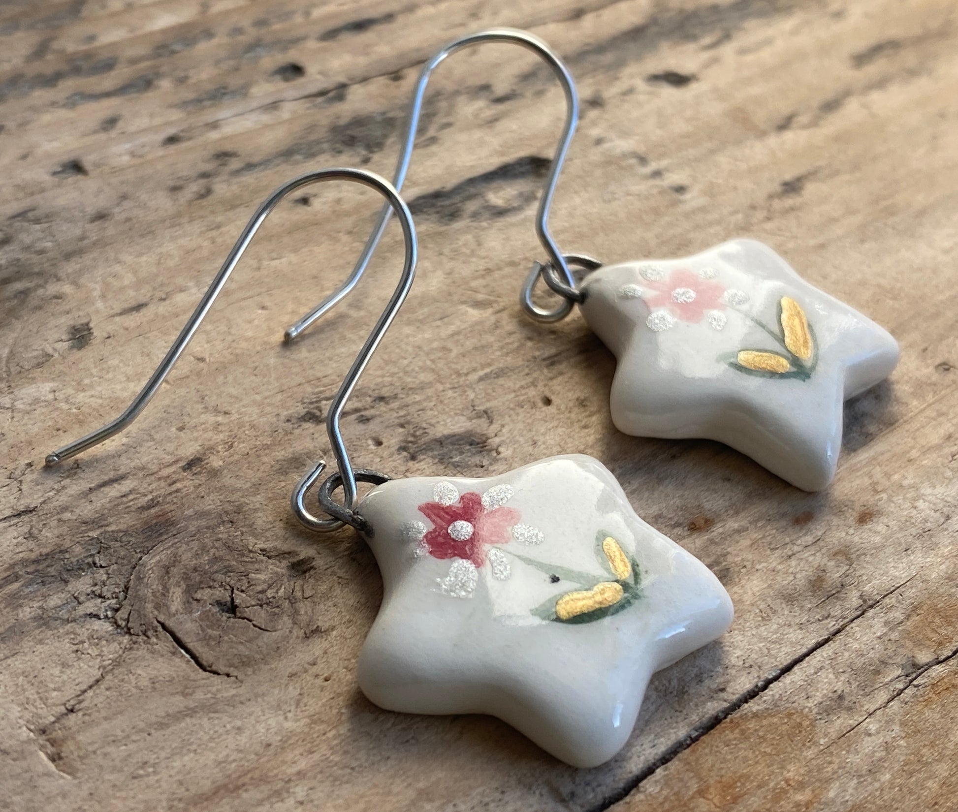 Each star measures 2.3cm with a total drop of 4.5cm, ceramic is surprisingly lightweight making it perfect for easy to wear earrings.
