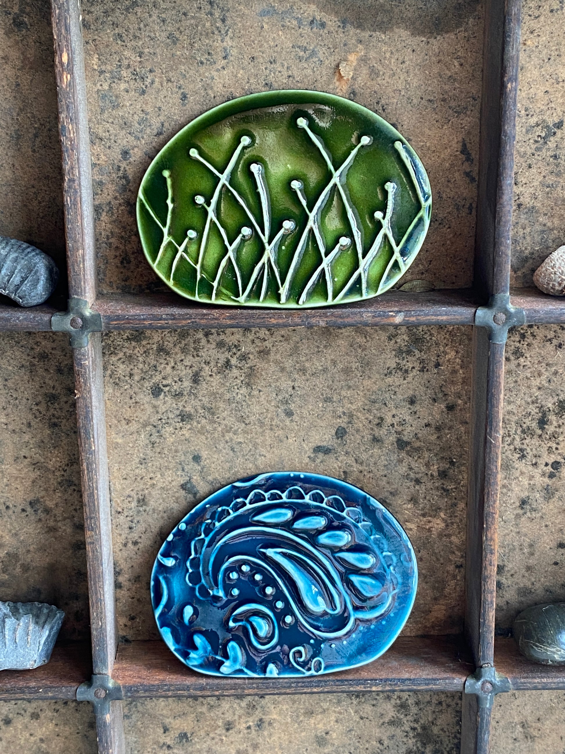The brooches are imprinted with a two different unique MatildaBelle carvings one of paisley the other of seed heads.