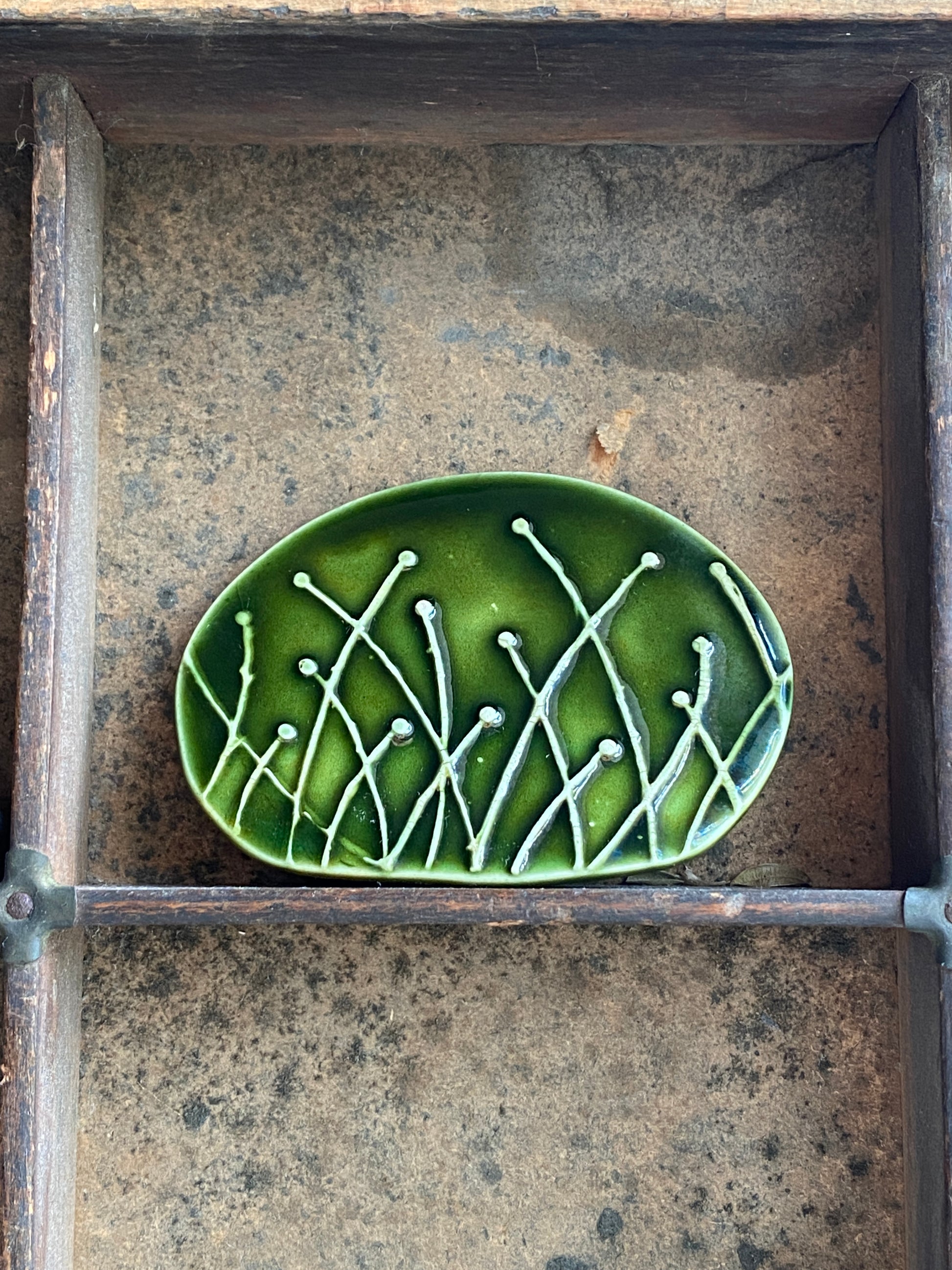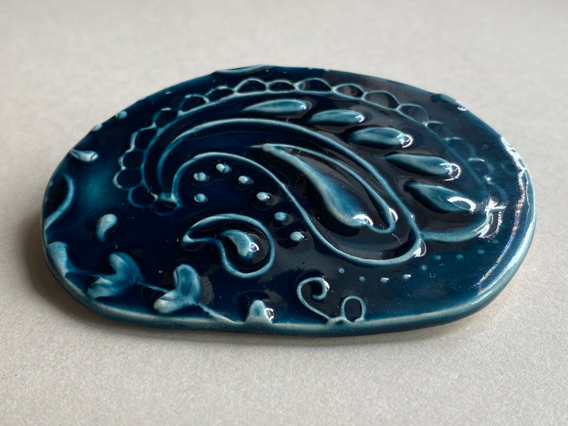 These lovely brooches are handmade from earthenware clay and fired twice for durability. Each piece features a high-quality safety pin and is stamped with the MB maker's mark on the back.