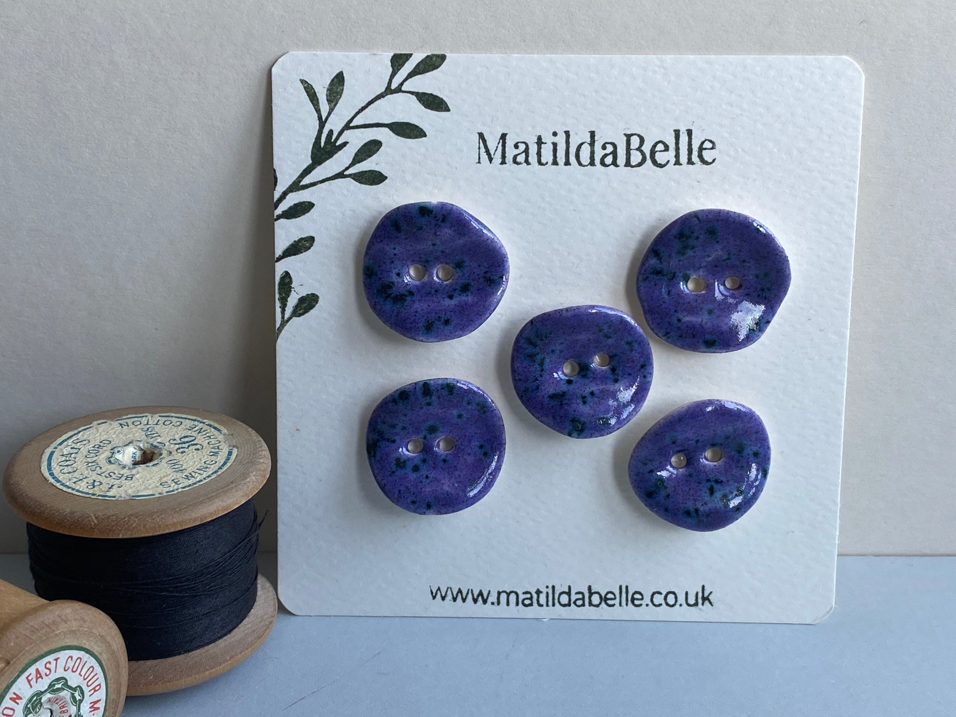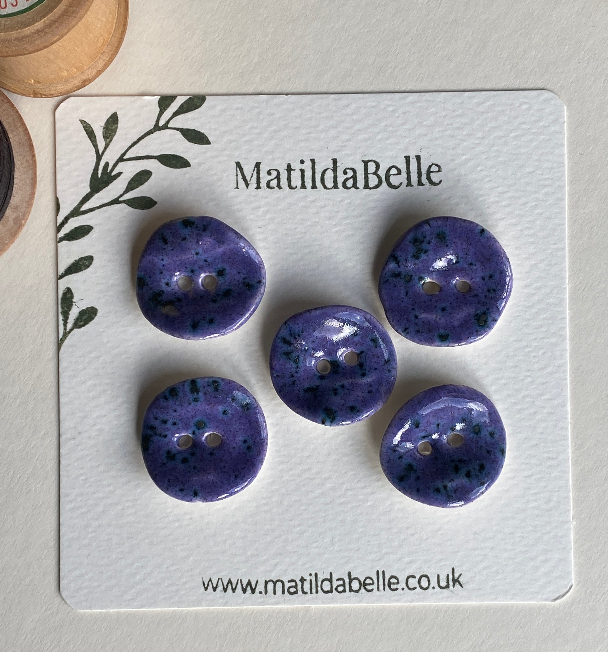 Handmade Ceramic Buttons 25mm rich Glossy Speckled Purple