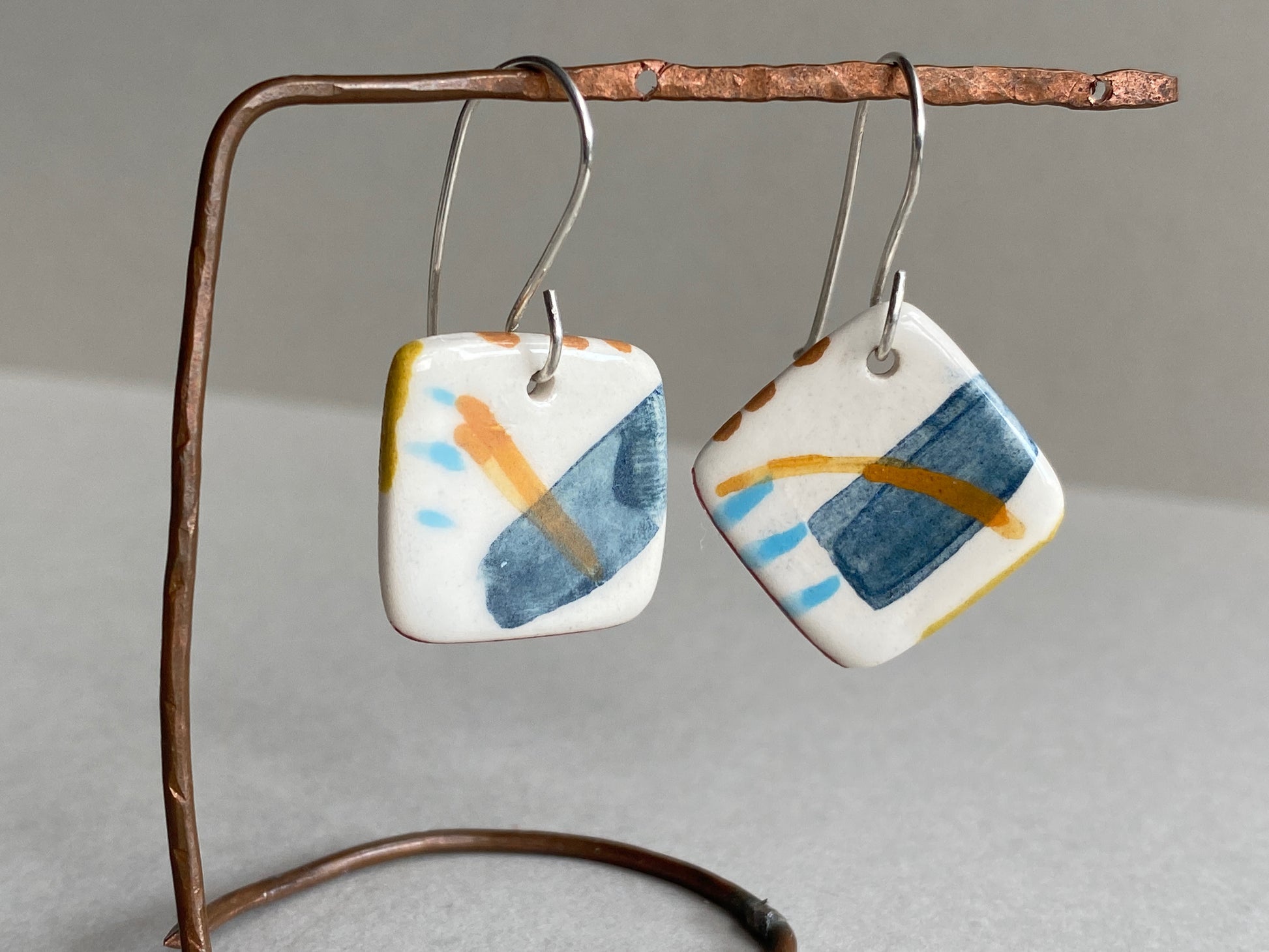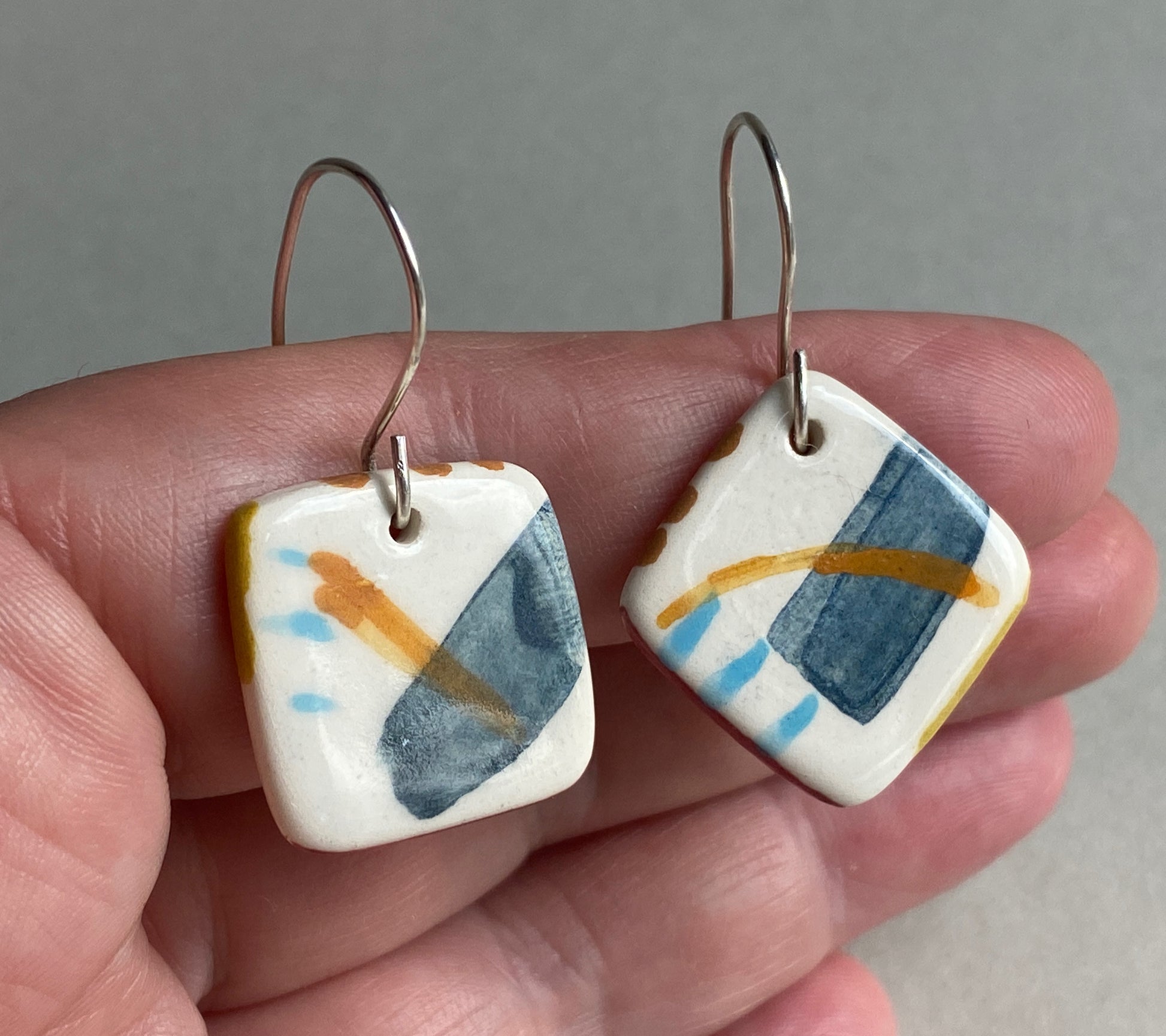 Introducing our stunning Handmade Ceramic Coastal Dangle Earrings, each one a unique work of art crafted from earthenware clay. These earrings capture the essence of evenings by the sea with their gorgeous coastal palette, hand-painted to perfection.