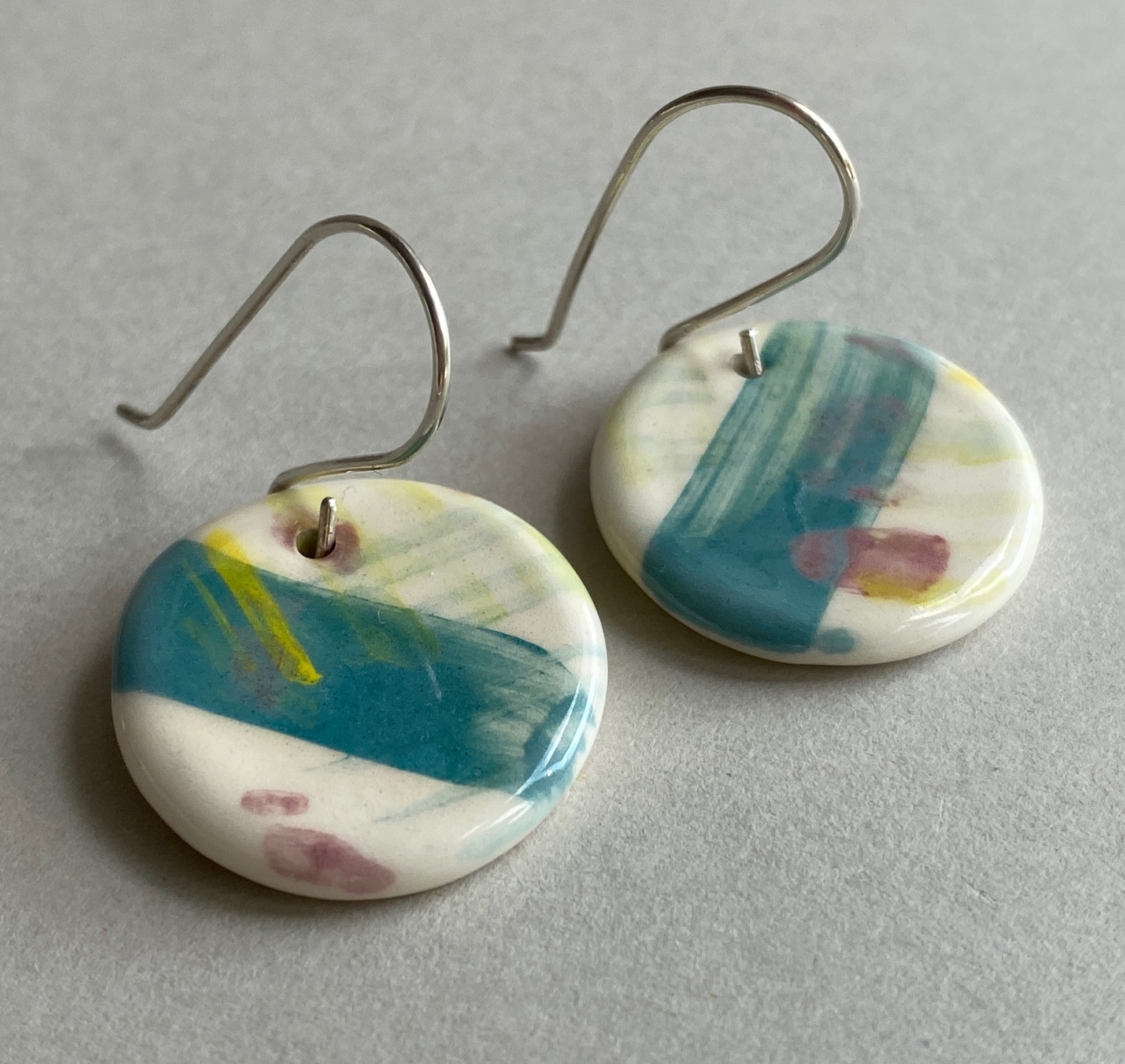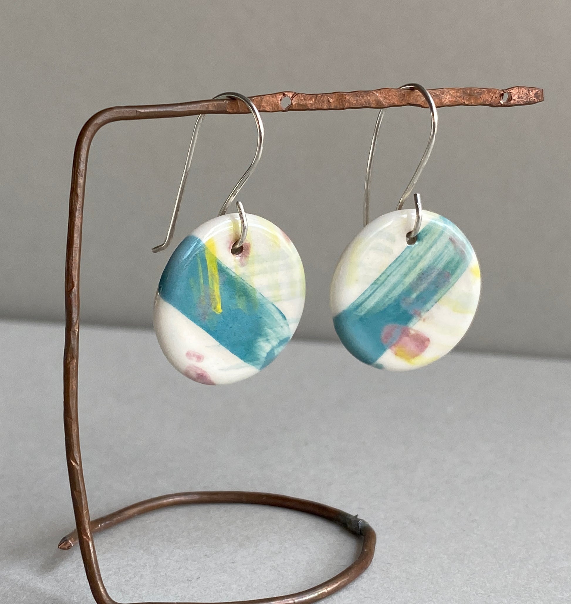 Introducing our stunning Handmade Ceramic Coastal Dangle Earrings, each one a unique work of art crafted from earthenware clay. These earrings capture the essence of evenings by the sea with their gorgeous coastal palette, hand-painted to perfection.
