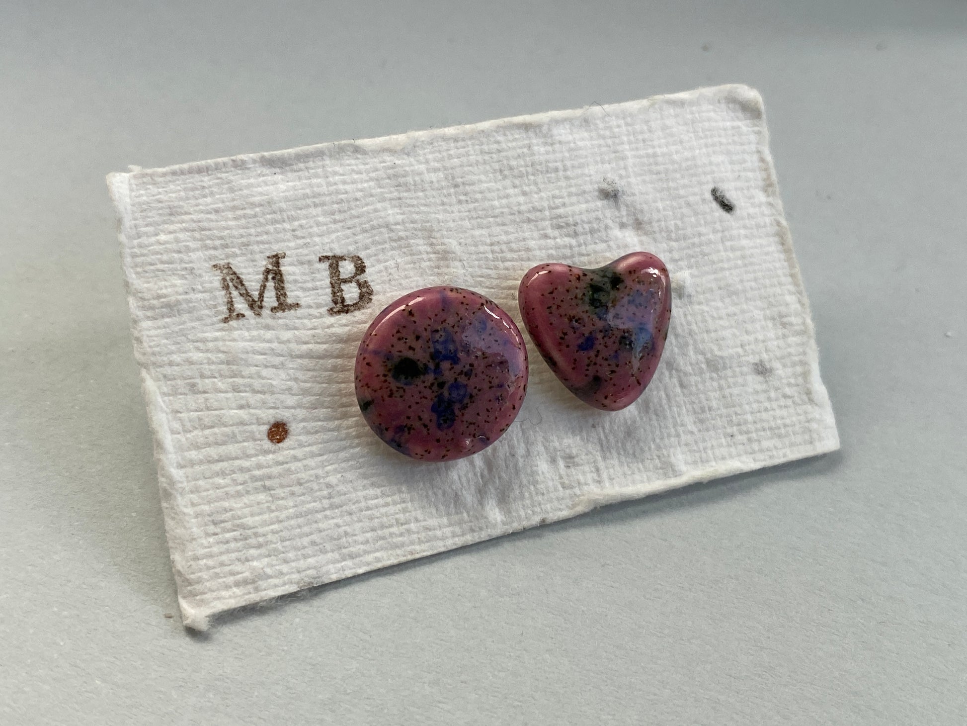 Handmade Ceramic Purple Stud Earrings - p&P incl