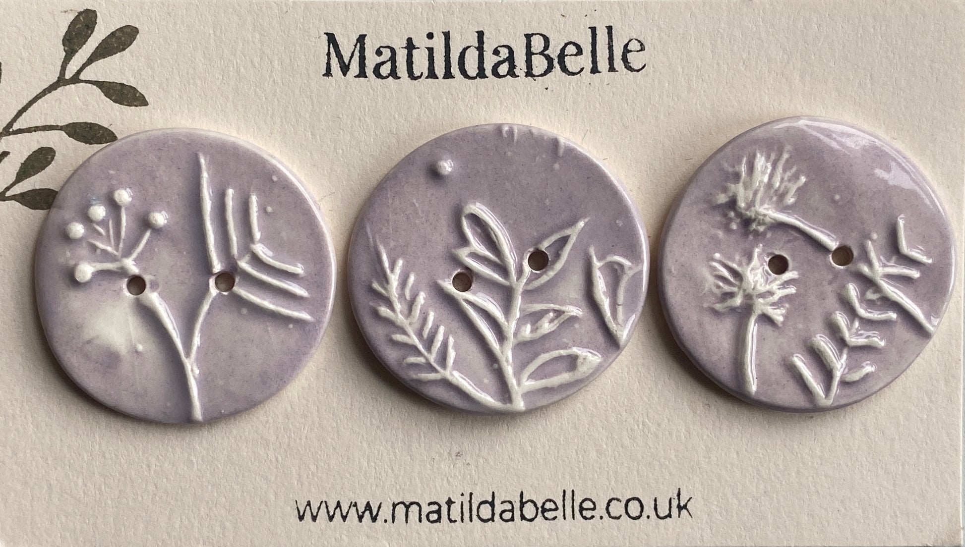 Handmade Ceramic Round 36mm Buttons Botanical Lilac