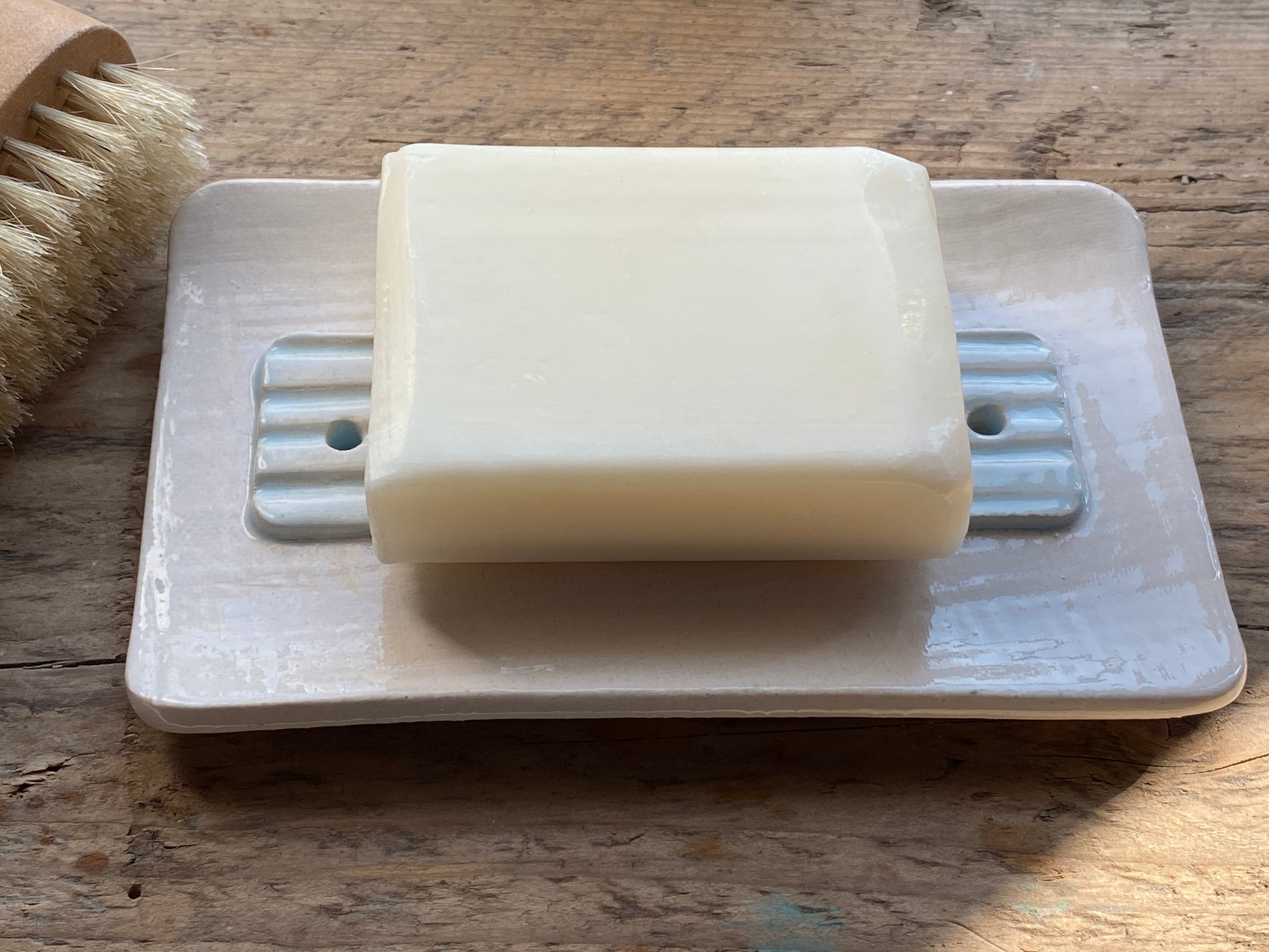 Handmade Large Ceramic Soap Dish in Soft Blues