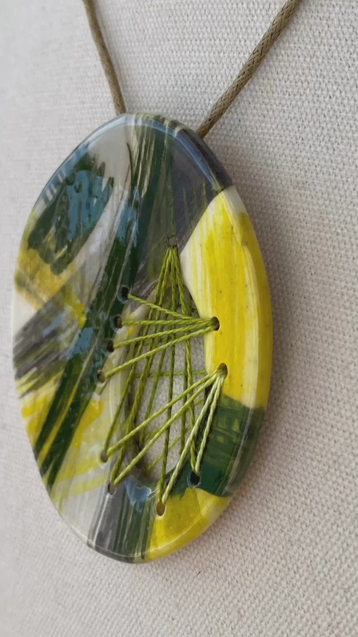 Handmade Ceramic Statement Pendant Necklace large Oval Spring Colours