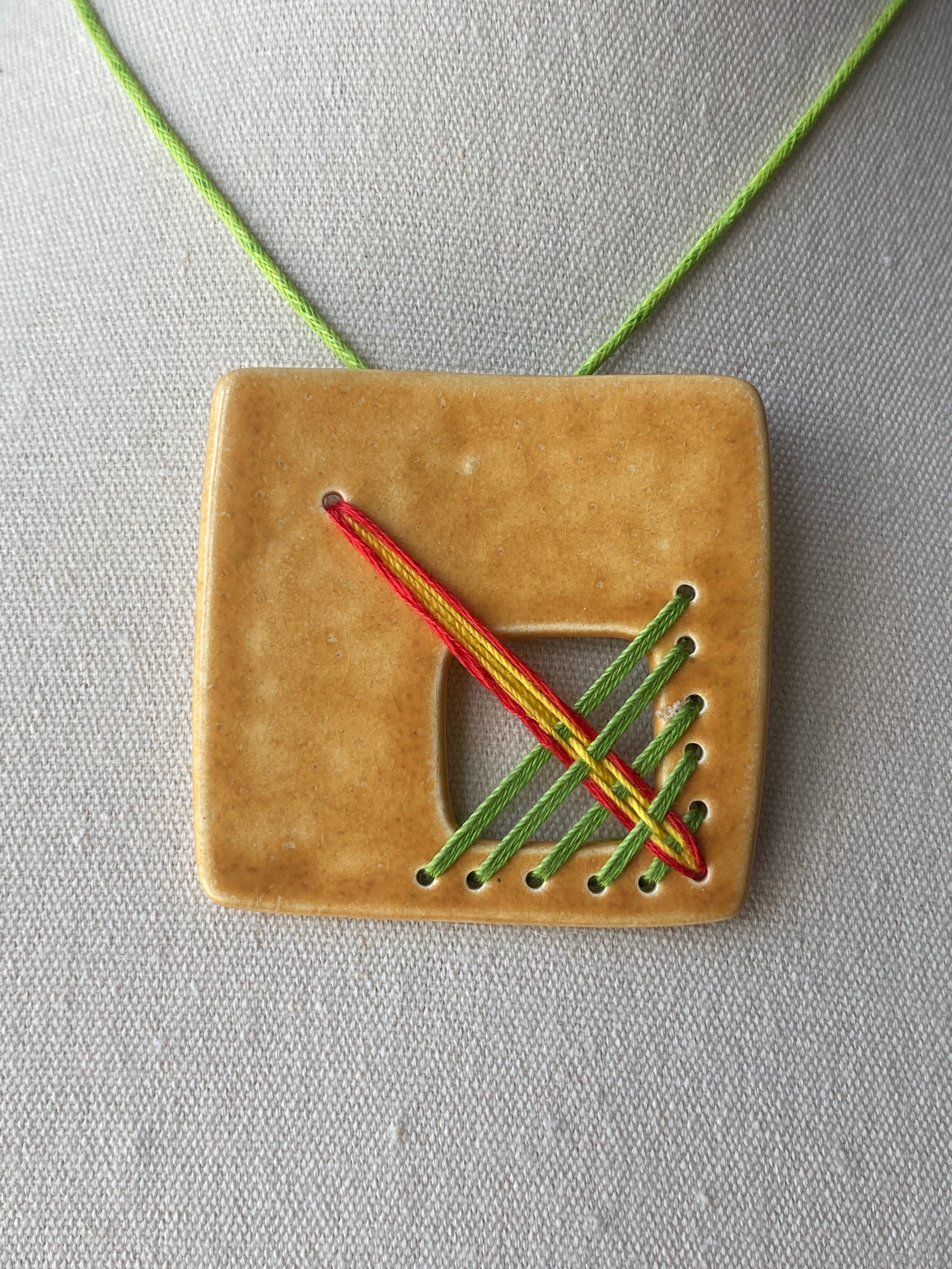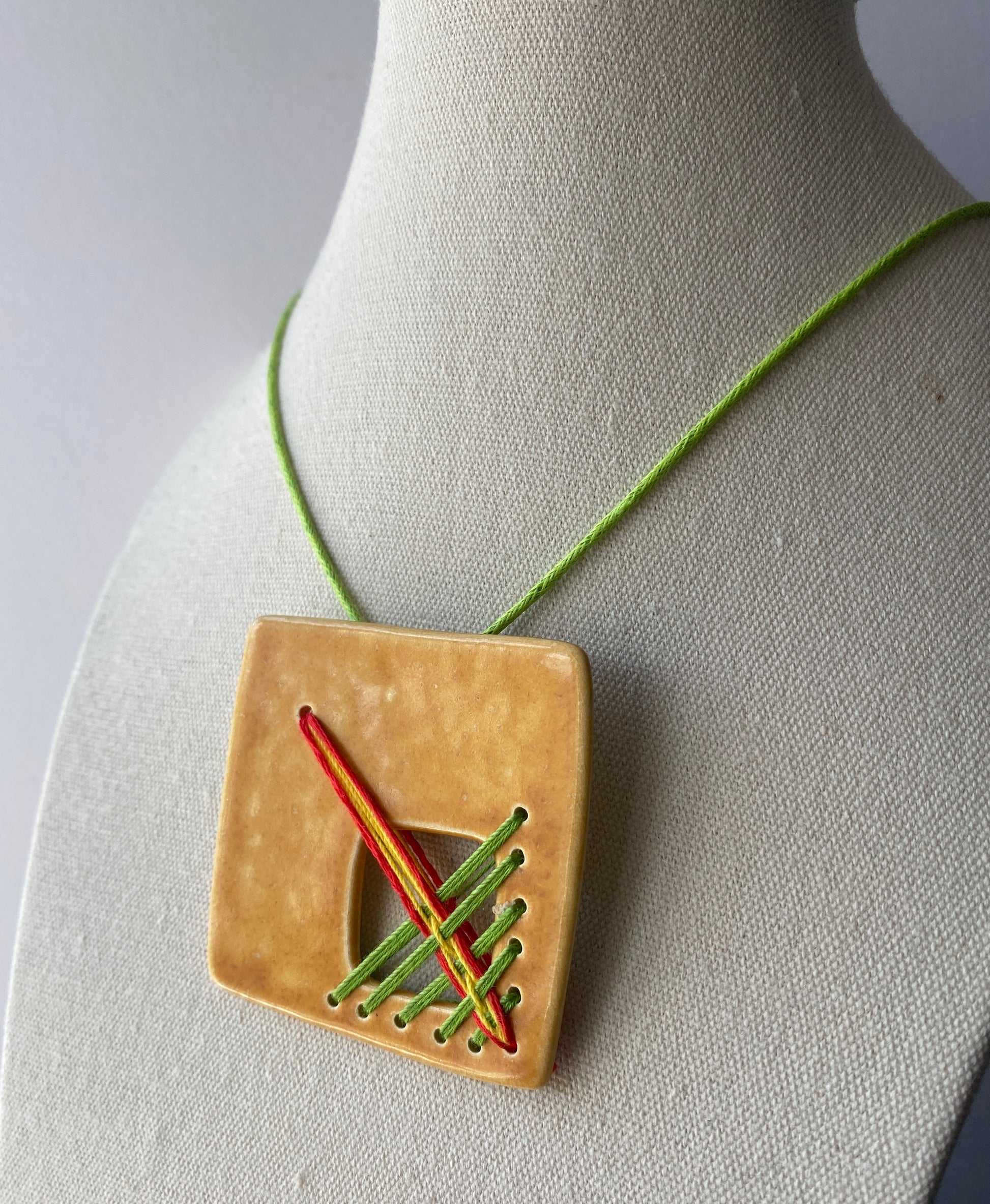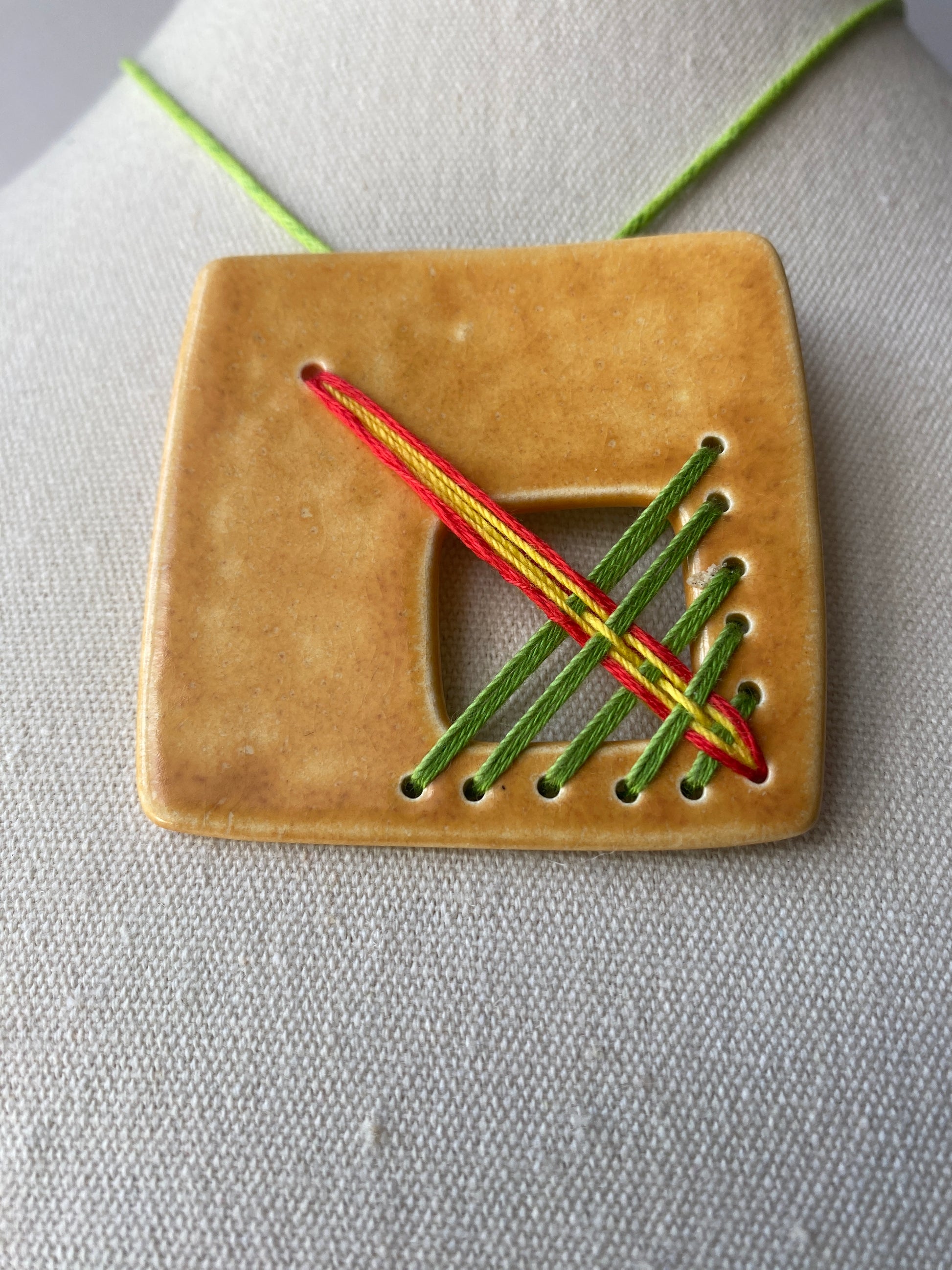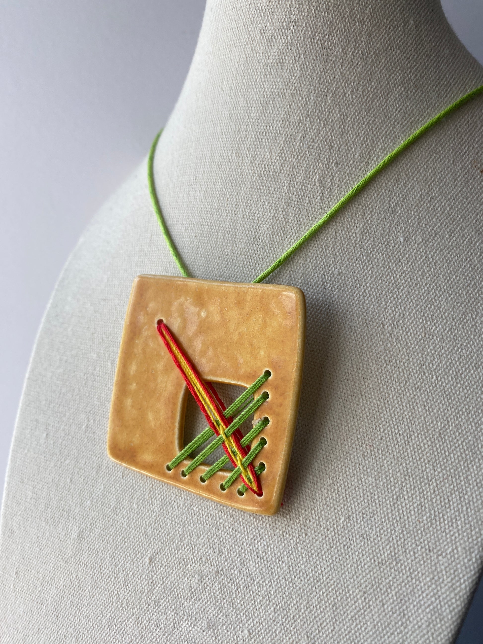 Handmade Ceramic Stitched Pendant Necklace Vibrant