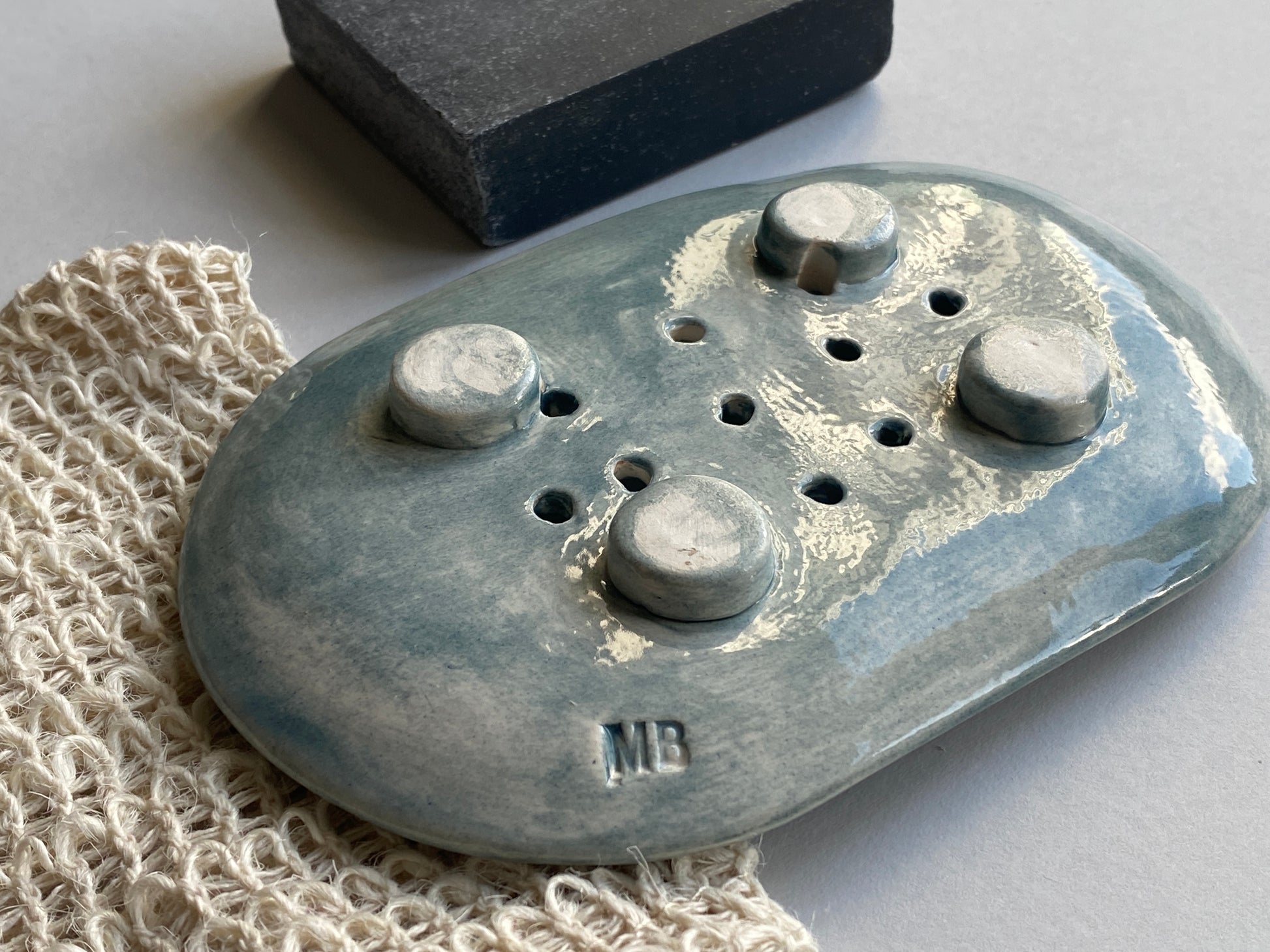 So unique beautiful large handmade soap dish hand formed from earthenware clay.