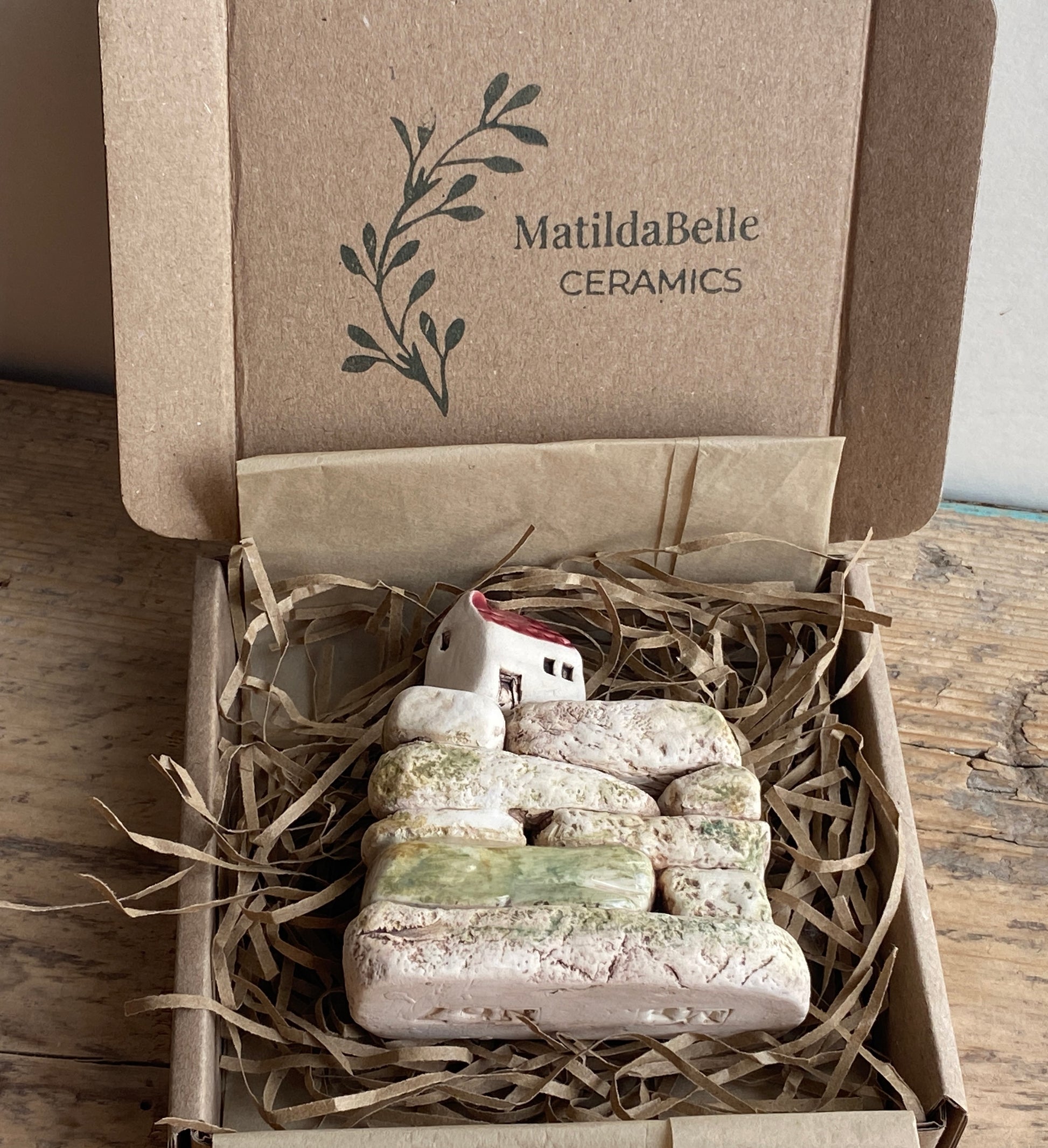 Inspired by the picturesque North Yorkshire village we call home. Each small sculpture is handmade from high-quality earthenware clay, replicating the intricate details of the region's iconic Yorkshire stone houses and walls.