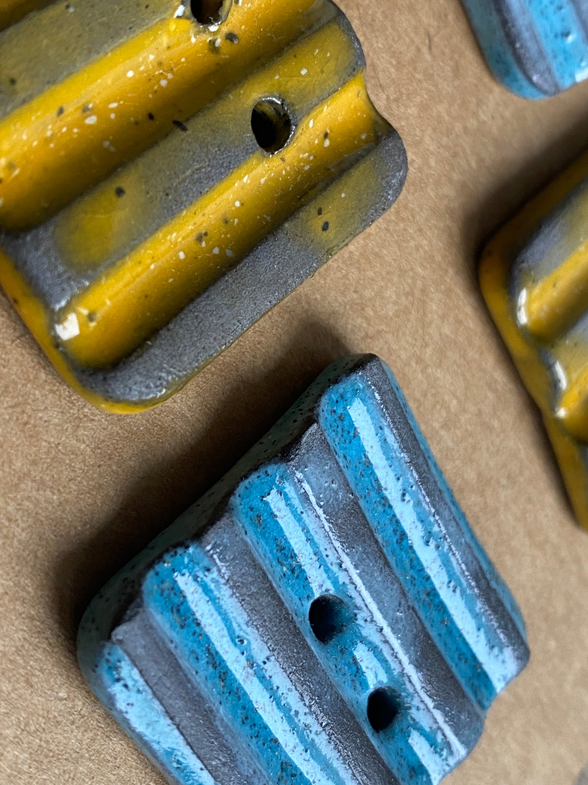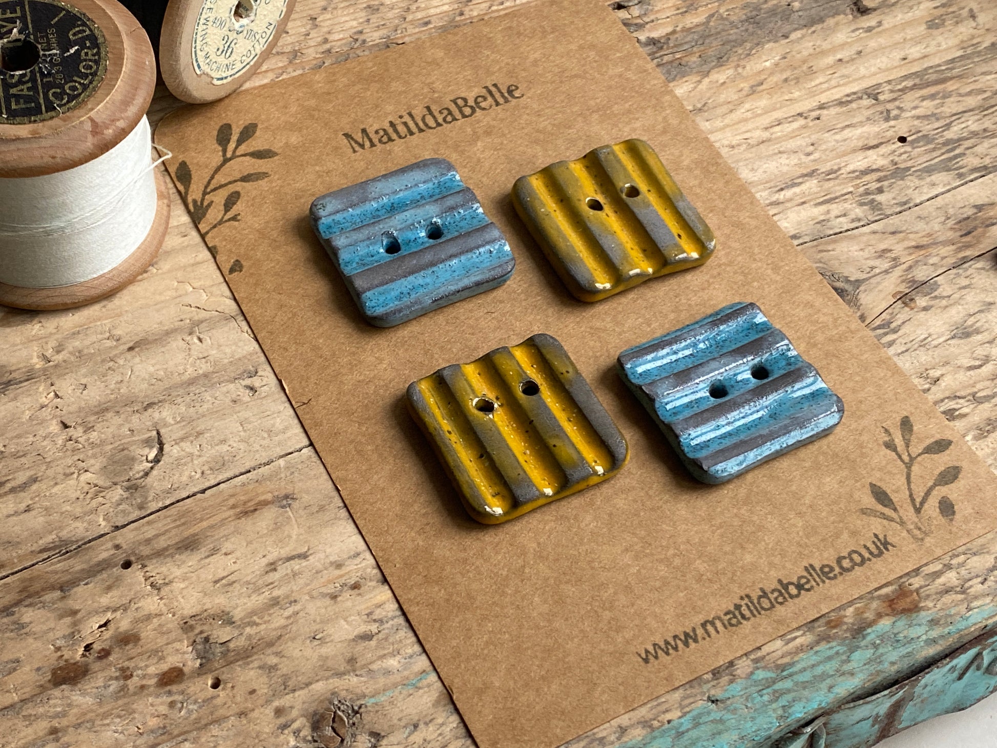 30mm Set of 4 Square Stoneware Buttons 30mm rippled yellow and blue