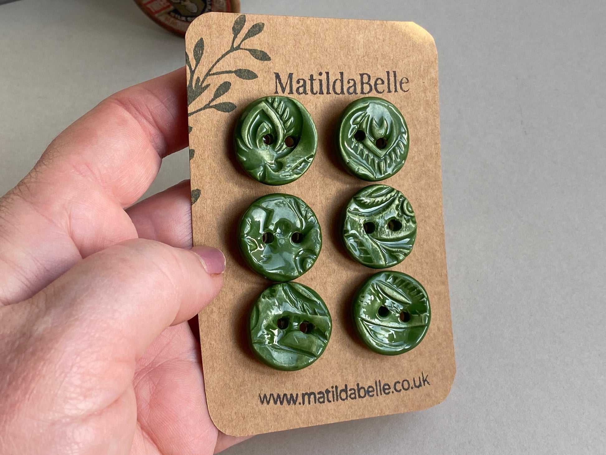 22mm Set of 6 chunky botanical buttons Forest Green 22mm