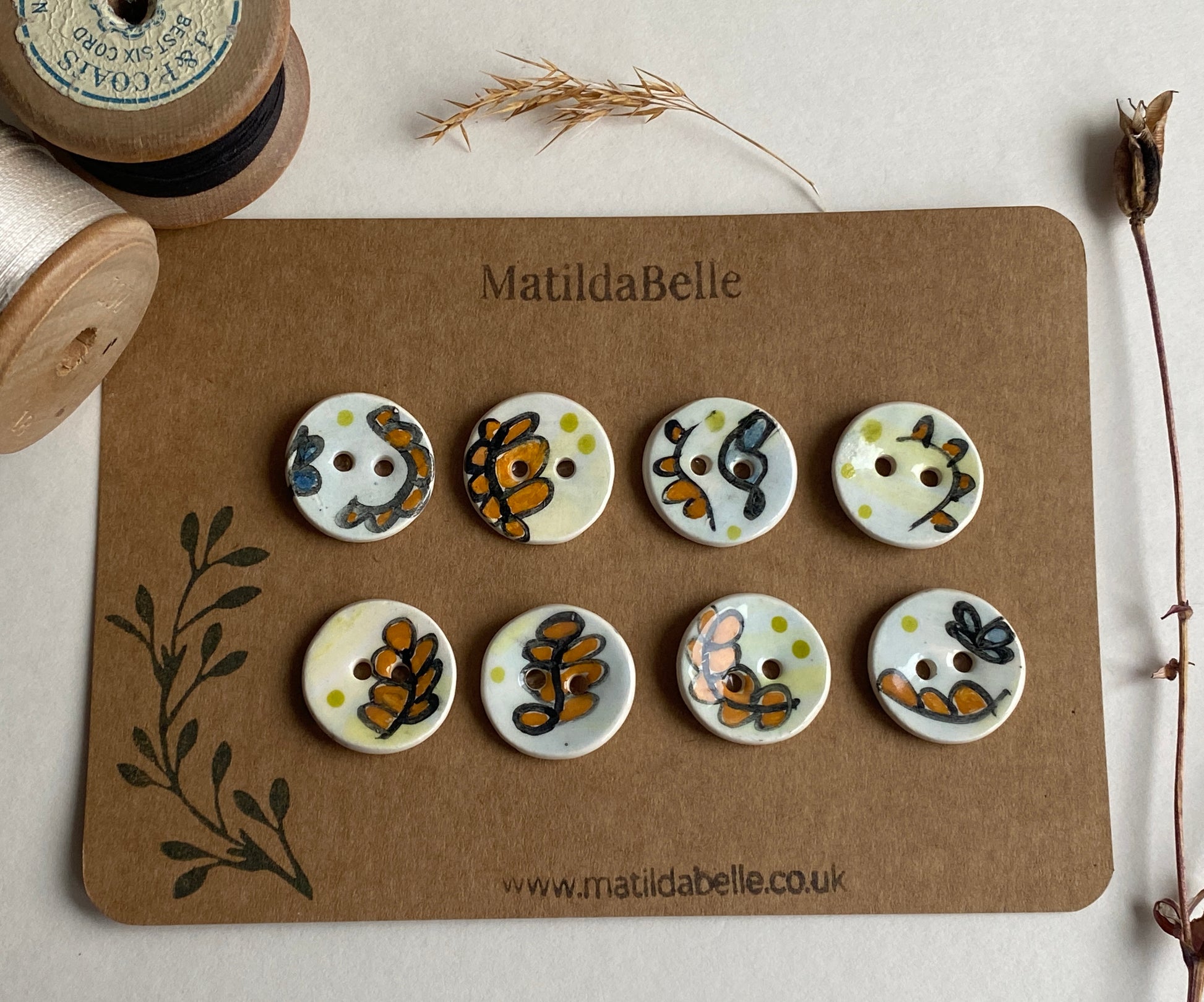 These classic ceramic buttons are perfect for adding a touch of handmade quality and character to garments, accessories, and more.