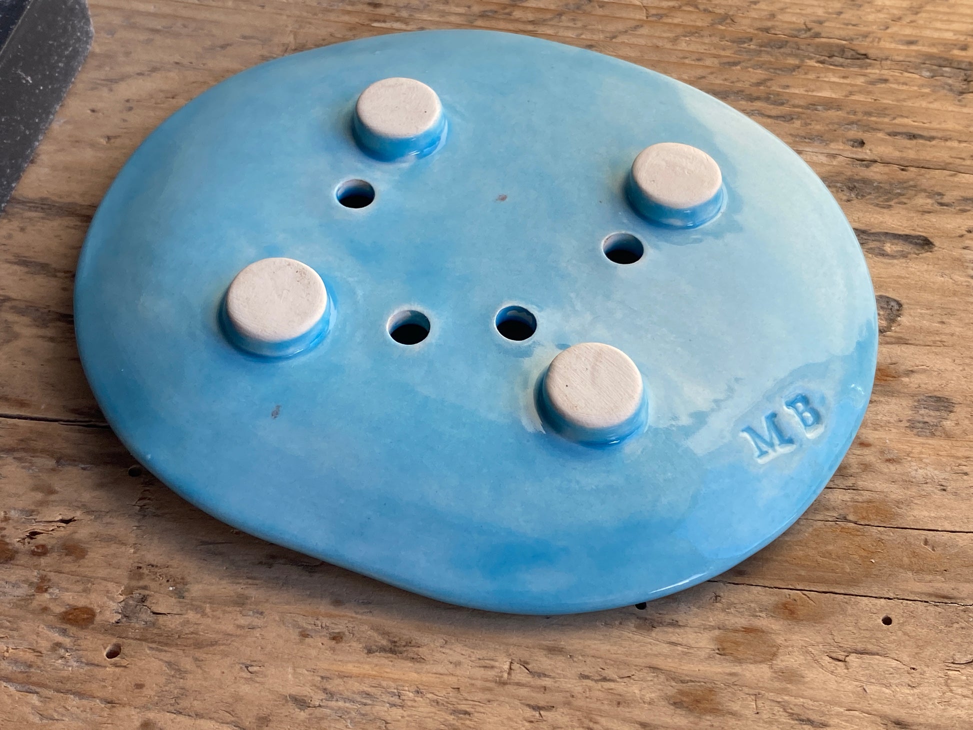 This unique handmade soap dish is formed from Earthenware clay by me in my little home studio overlooking the garden.