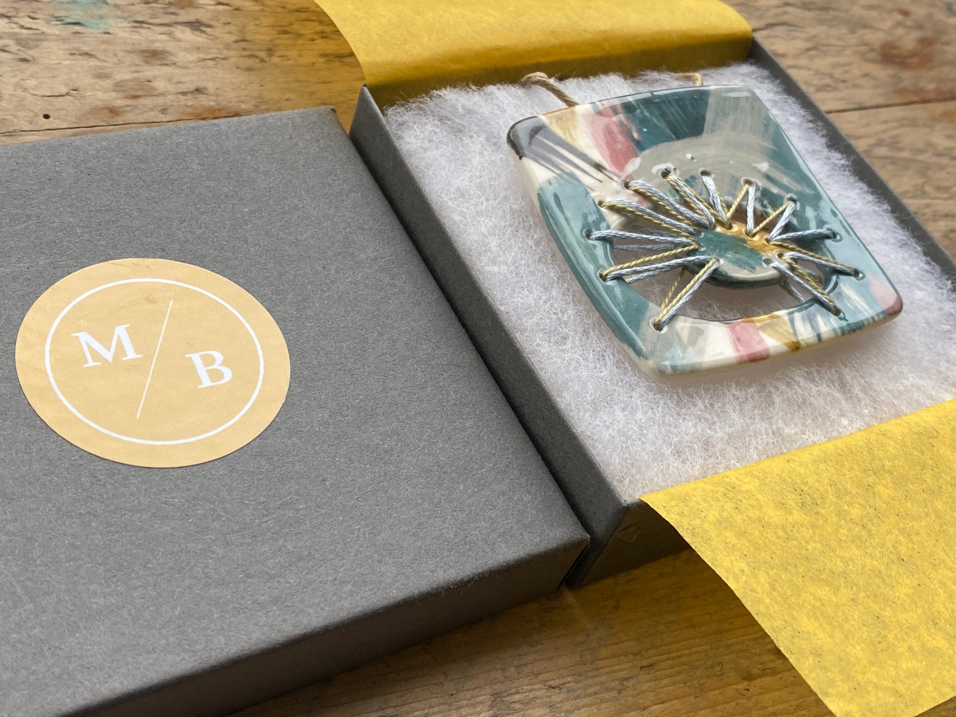 Our Handmade Ceramic Square Pendant Necklace comes beautifully wrapped and gift boxed, ready to be sent directly to the lucky recipient.