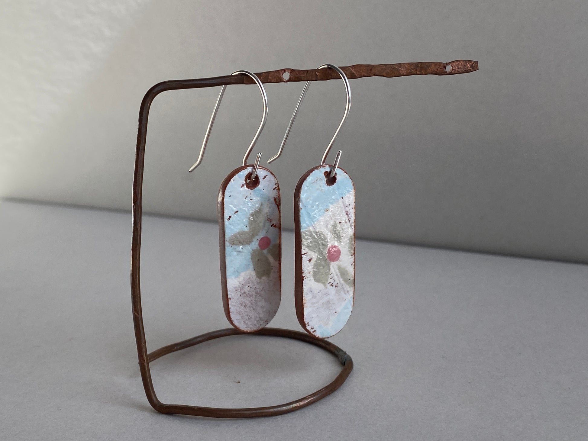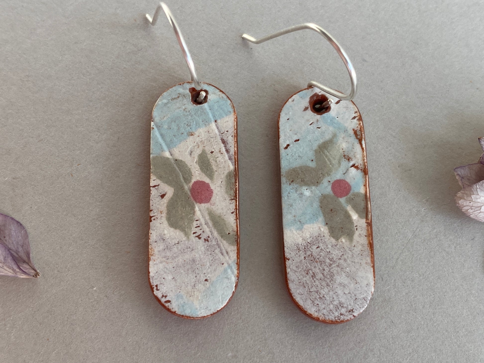 Vintage Botanical Clay Earrings Sterling Silver Drops